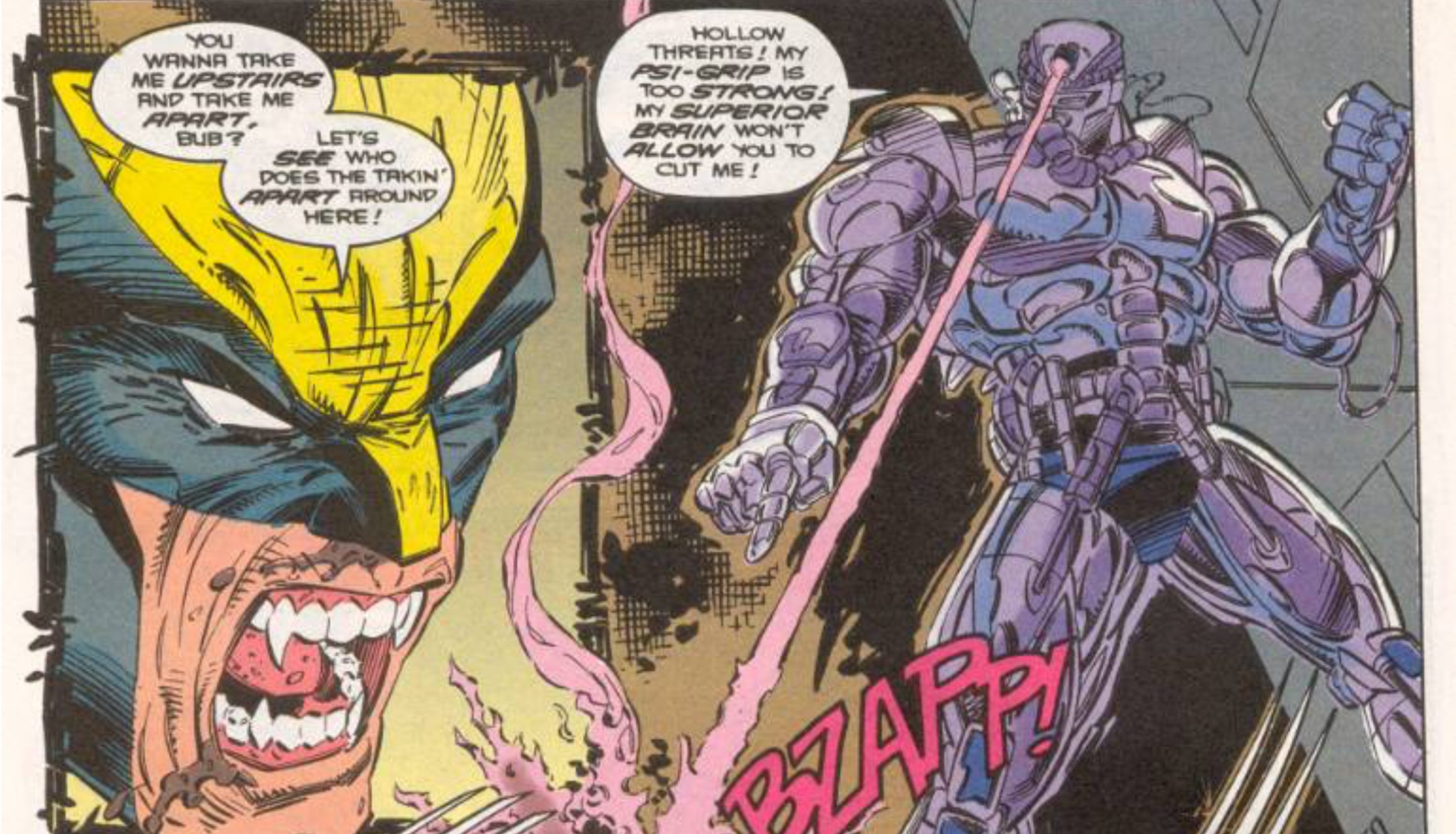 Weapon X used false memories to control its subjects, and these were created by a man named Aldo Ferro, who had psychic powers. In return for a special serum that extended his life – made from Wolverine’s healing ability – Aldo worked for Weapon X. However, Weapon X double-crossed him, leaving him needing a large, armored suit just to stay alive. Now calling himself Psi-Borg, he’s incredibly powerful, able to fight off multiple Weapon X subjects at once, including Wolverine, Sabretooth, Maverick, and a clone of Silver Fox. He’s even strong enough to manipulate Sabretooth into killing the Silver Fox clone.
