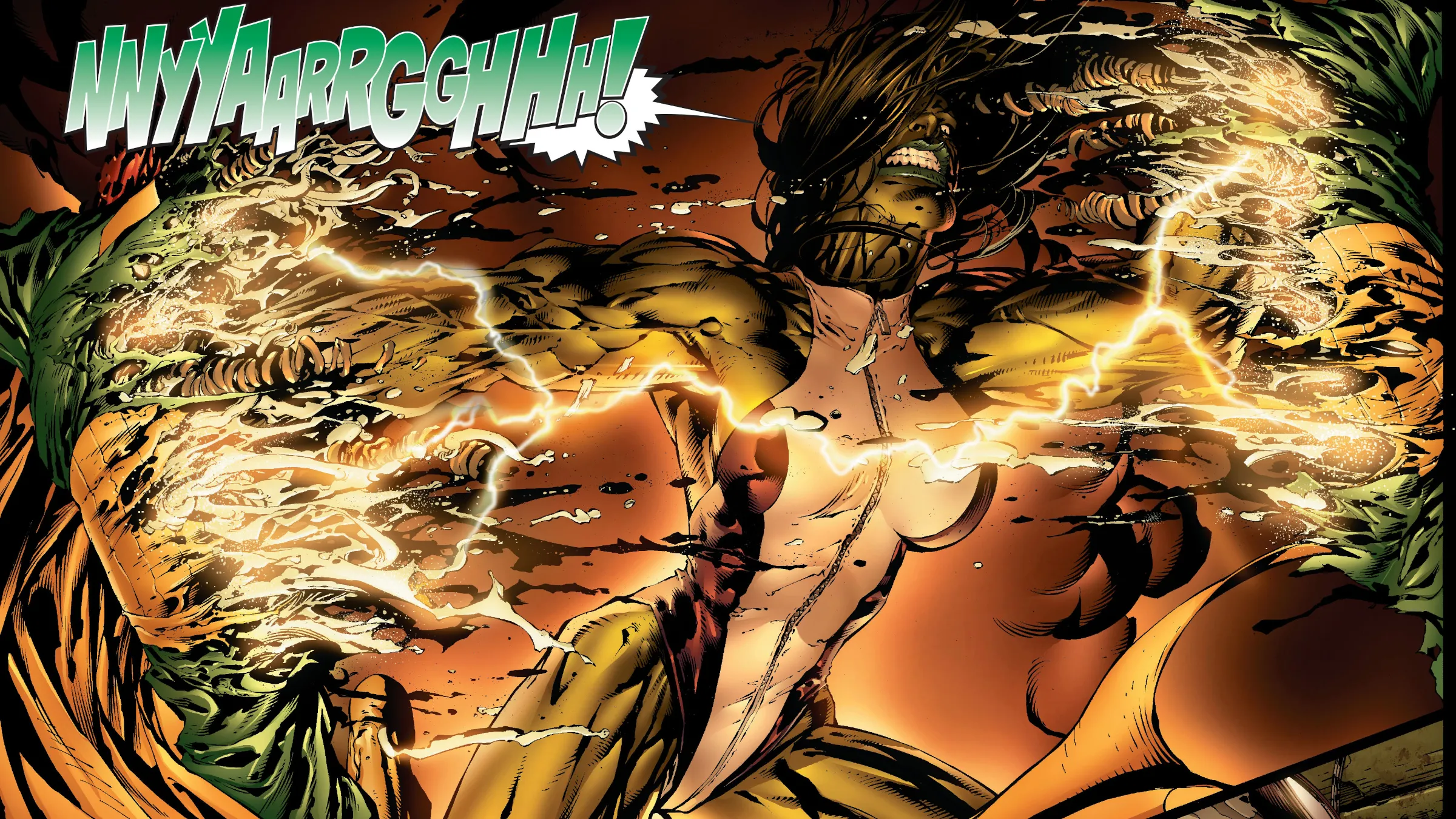 It seems someone at Marvel enjoys depicting extremely violent deaths – characters being torn apart, with all the gruesome details shown to the reader. The Sentry, for example, has done this to several villains. But one particularly shocking moment happened in Avengers #500, when She-Hulk ripped Vision in half. While this death wasn’t overly bloody, it was especially horrifying because of what led up to it. The Scarlet Witch had lost control of her powers and was attacking the Avengers, warping reality around them.