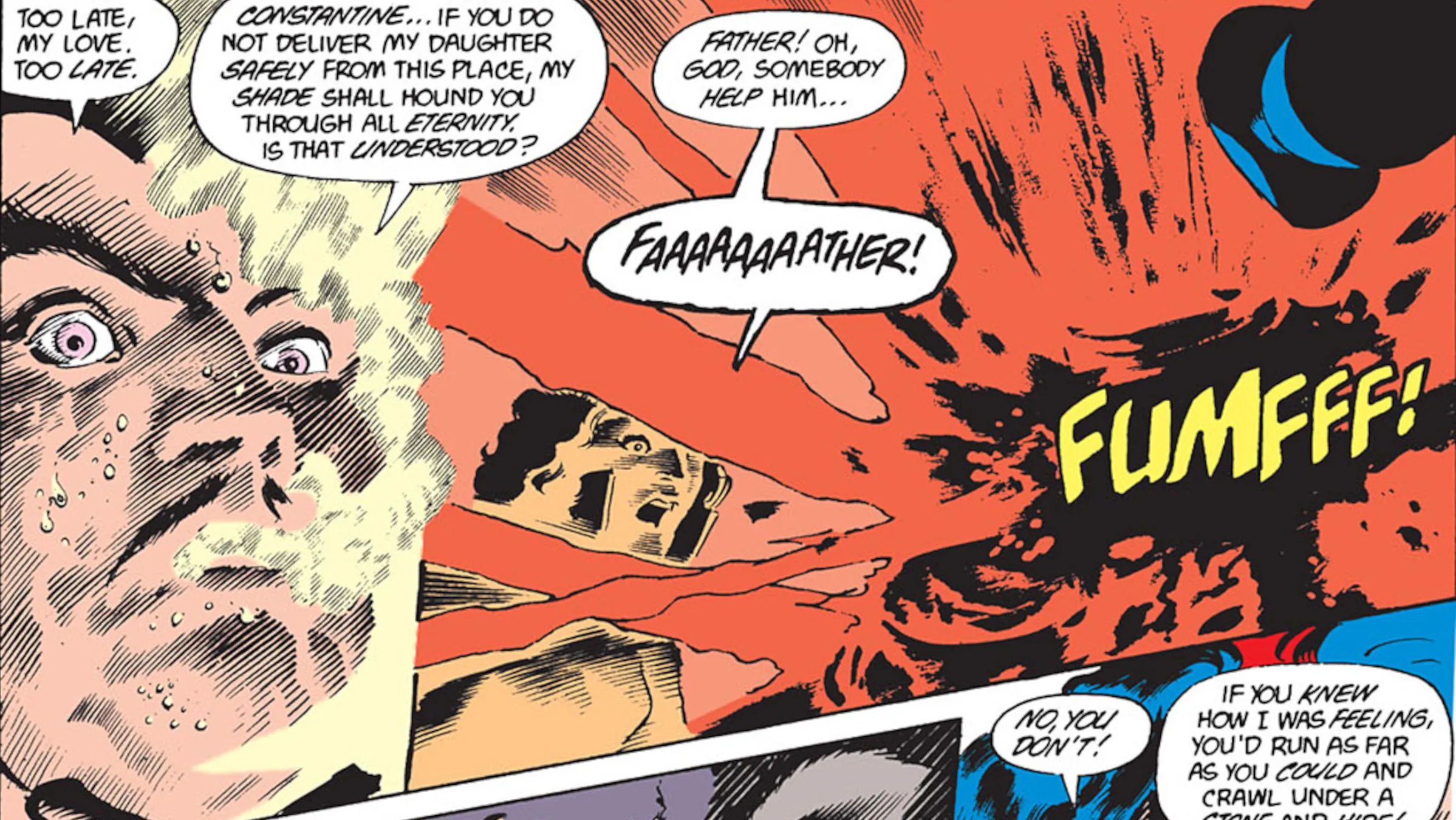 Zatara was the father of the well-known magician Zatanna, and a skilled magic user himself. Though he had stopped actively practicing magic, he joined forces with other powerful mages to try and prevent the rise of the Great Darkness, as seen in Swamp Thing #50 (1982). They attempted a seance to glimpse into the Outervoid, but this alerted the Great Darkness, which attacked them with burning energy. Zatara sacrificed himself to save his daughter, Zatanna, by redirecting the attack.