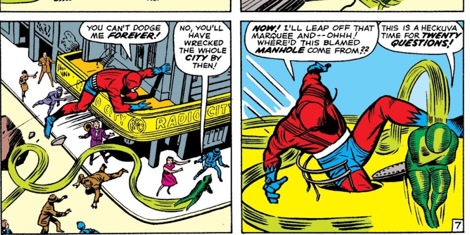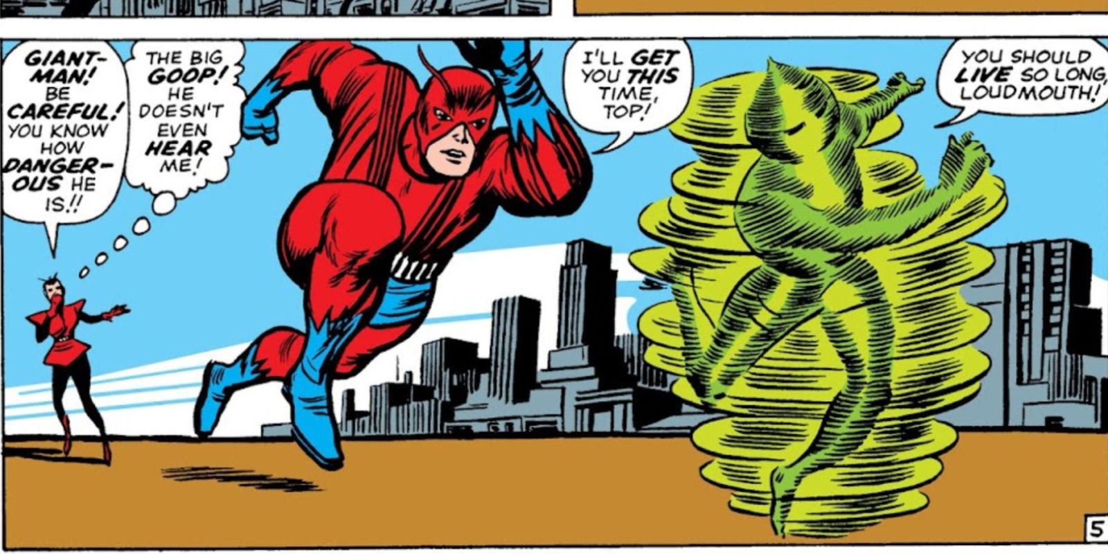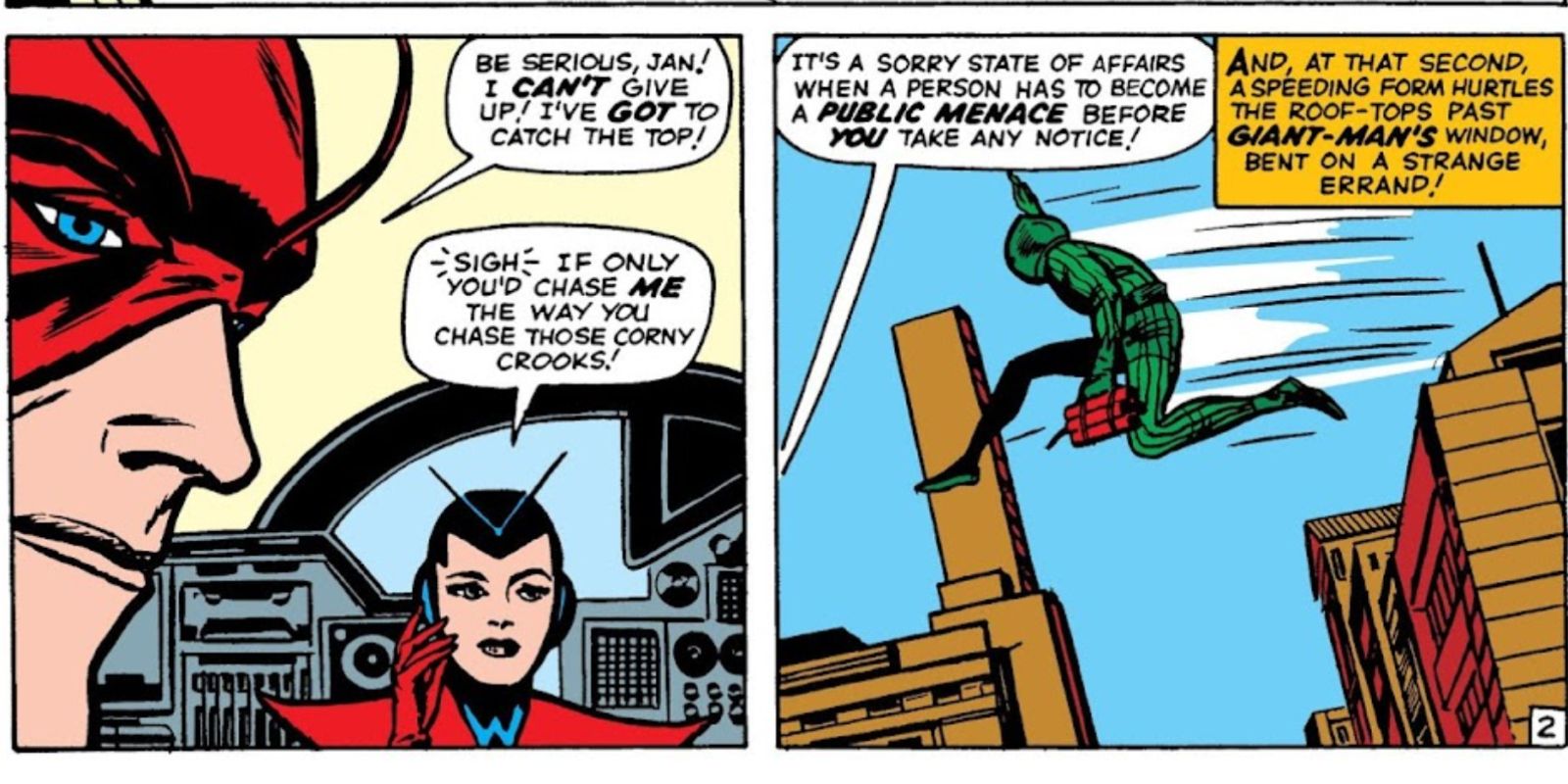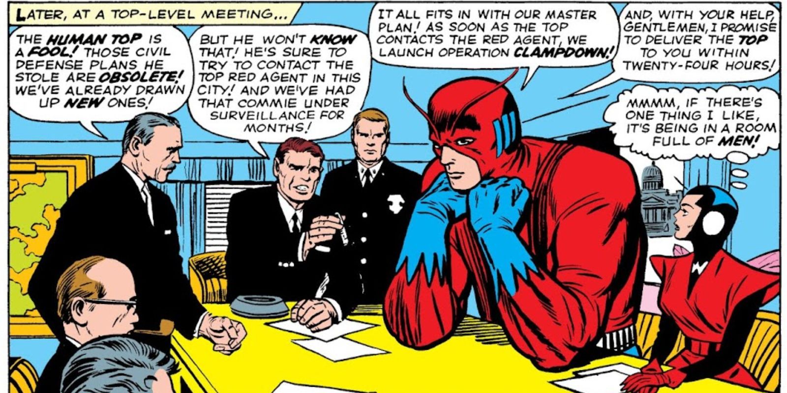 Okay, so there’s this supervillain running around called The Human Top – seriously, he just speeds and spins everywhere and nobody can catch him! It’s a total mess, and Ant-Man and the Wasp are the only ones who can help. In Tales to Astonish #51, a classic from 1963 by Jack Kirby and Stan Lee, they get together with the police to figure out a plan. Everyone’s brainstorming, trying to nail down the details, when the Wasp comes up with… well, it’s honestly one of the weirdest ideas I’ve ever seen in a Marvel comic!