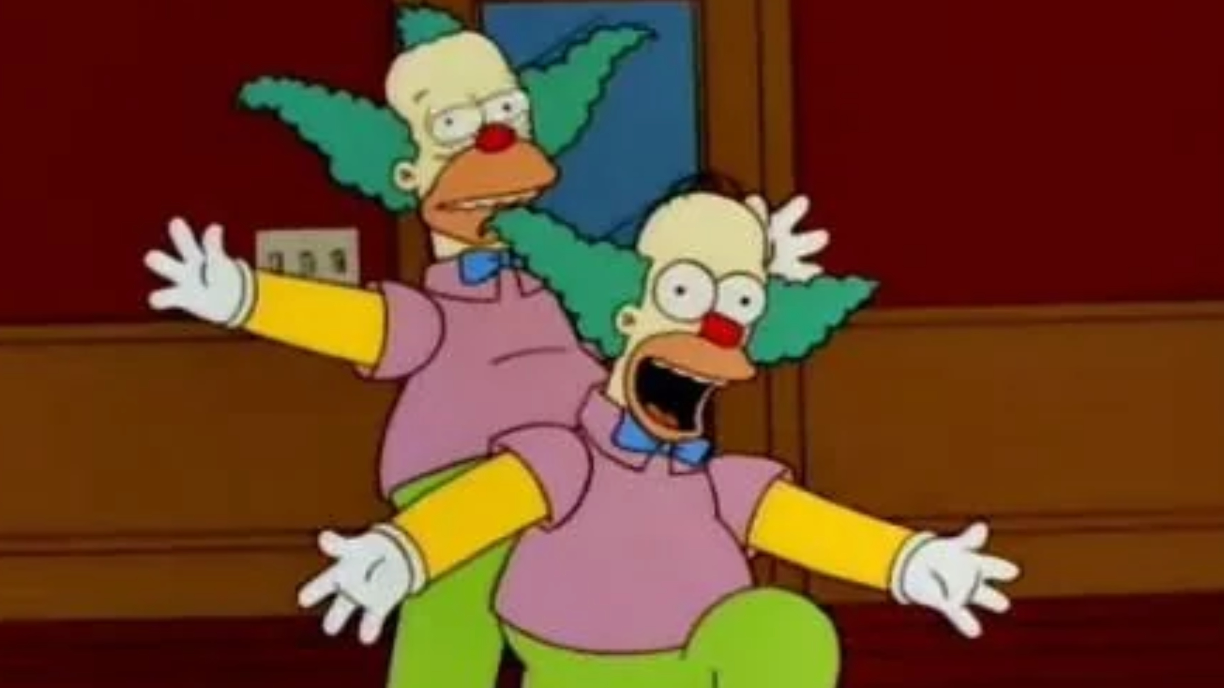 The classic Simpsons episode, “Homie the Clown,” features Homer attending clown college to become a Krusty-like performer. Krusty, needing to cover his gambling debts, is expanding his brand by licensing out performers. Homer enjoys the perks of being mistaken for Krusty, receiving special treatment and gifts, but this lands him in trouble with some dangerous people who are actually looking for the real Krusty. Eventually, Krusty and Homer team up to resolve the situation and pay off Krusty’s surprisingly small gambling debts.