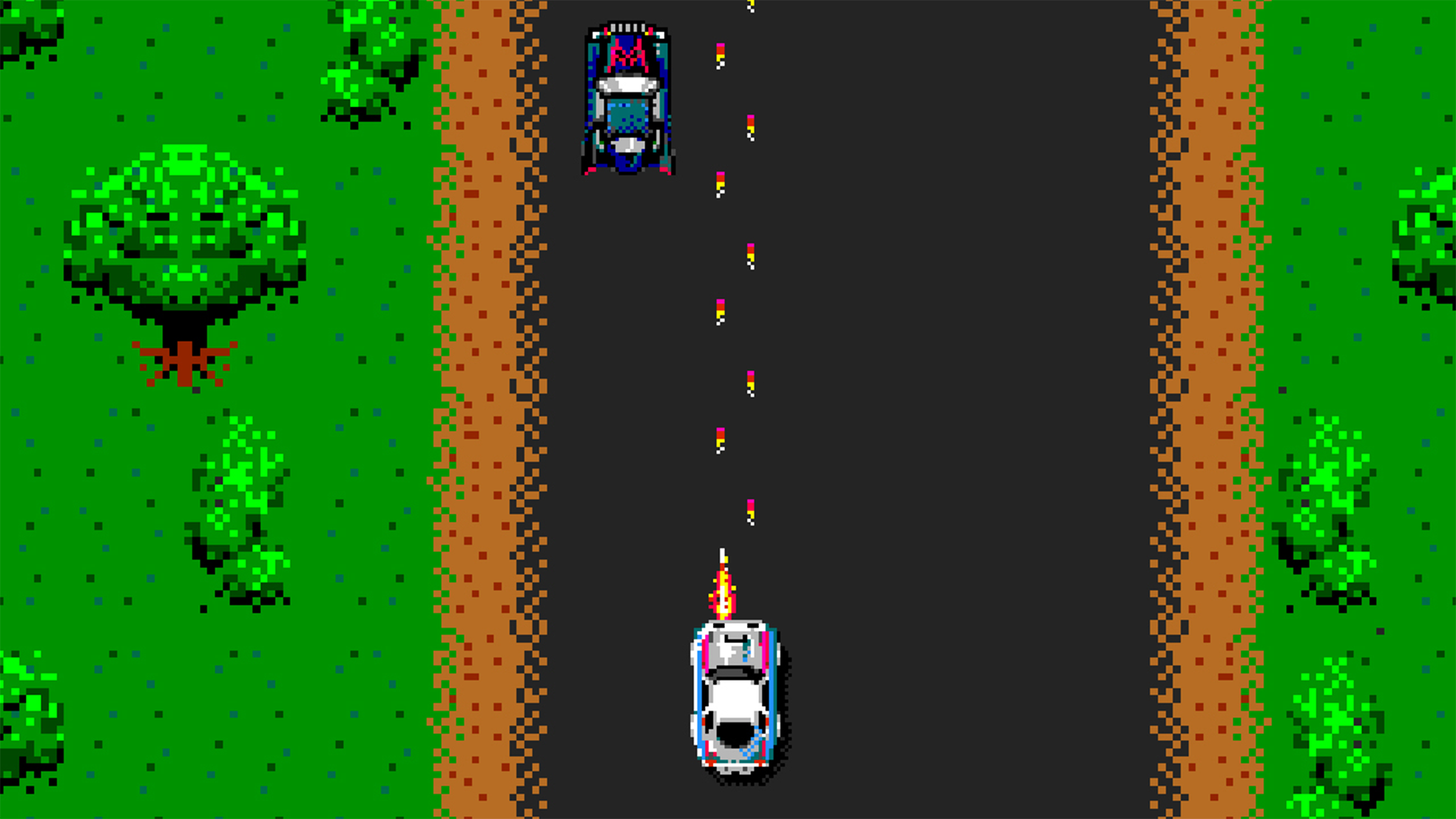 Spy Hunter isn’t your typical racing game; it’s more about car combat, but its focus on vehicles earns it a place in the genre. Heavily inspired by James Bond films, the game puts you in control of the “Interceptor,” a car equipped with weapons to destroy enemy vehicles. Players used a steering wheel, gas pedal, and multiple buttons on either an upright or sit-down arcade cabinet. Spy Hunter was a huge success, becoming one of the best-selling arcade games of its year and later being released on various home consoles.