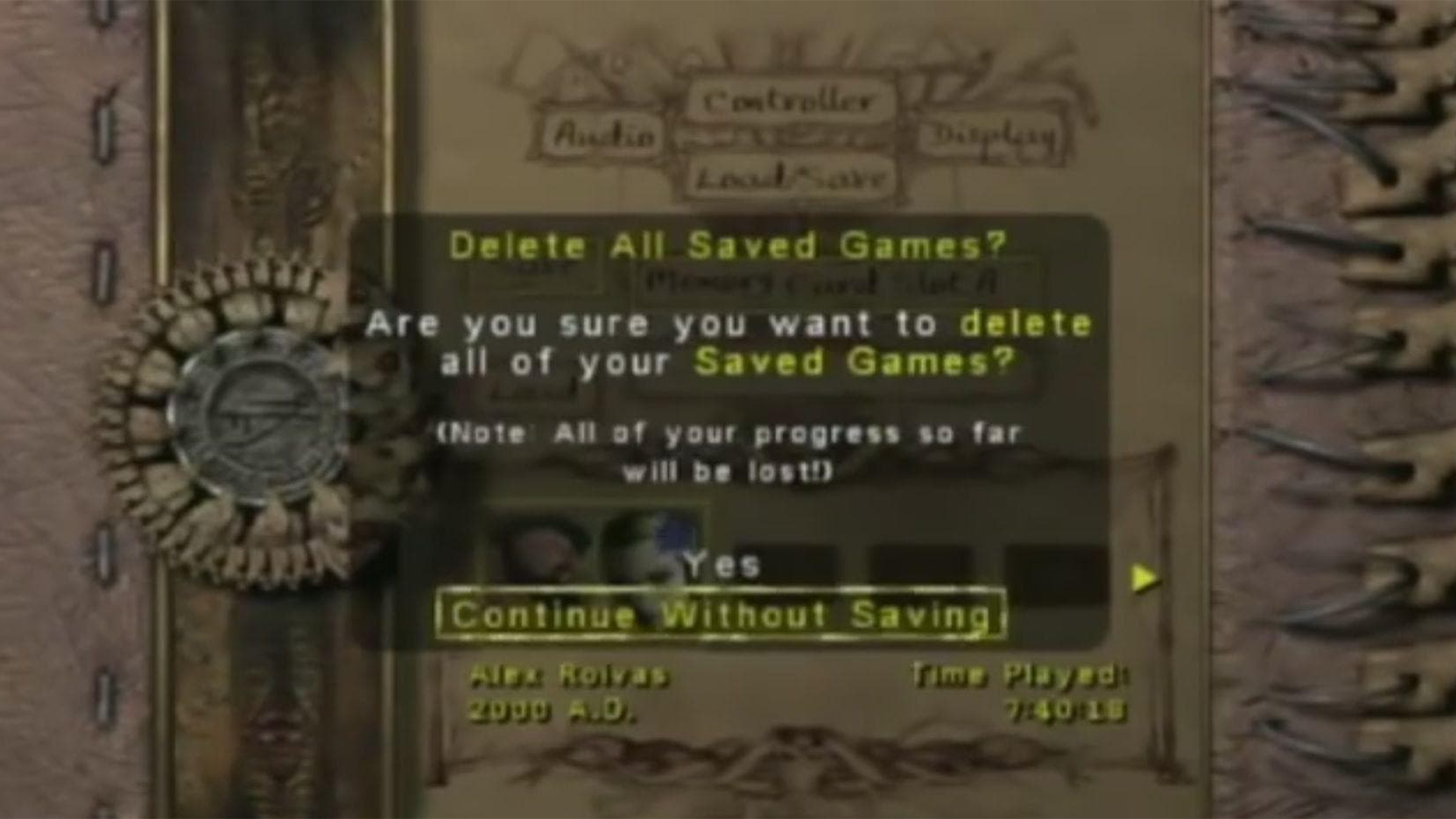 Survival horror games often try to unsettle players, and Eternal Darkness: Sanity’s Requiem does this in a particularly clever way. The game deliberately messes with you, making you question what’s happening with your own TV. It might suddenly lower the volume or prevent you from saving, and these aren’t just in-game events – they’re called “Sanity Effects,” a feature Nintendo actually patented. These effects start in the second chapter and begin as part of the game, but they quickly become more elaborate, even simulating errors with your GameCube console or TV as if something is actually malfunctioning.