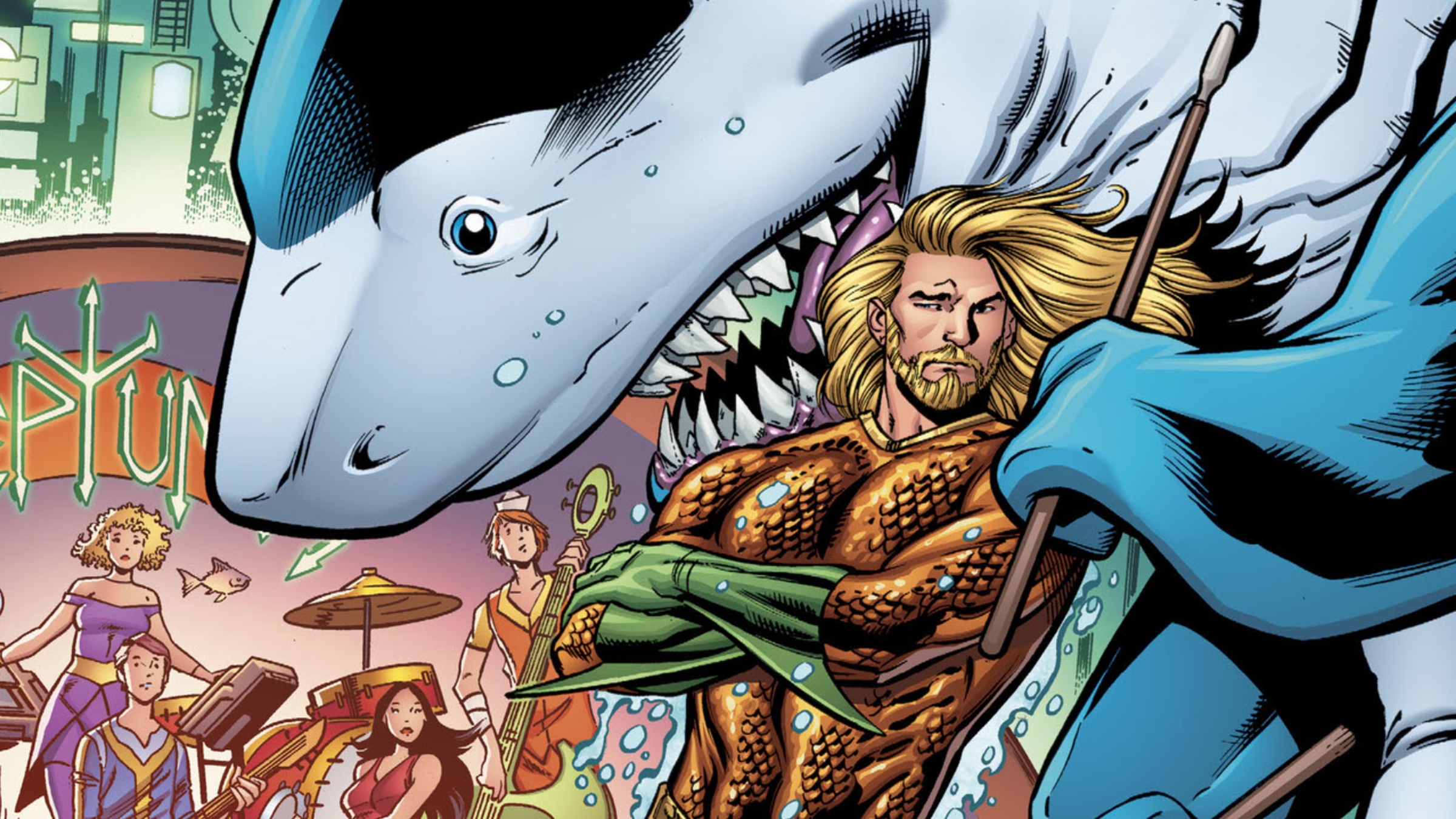 A forgotten character from the Hanna-Barbera cartoon studio makes a surprising comeback, teaming up with Aquaman in this special adventure. Jabberjaw, a shark from the future, finds himself stranded on present-day Earth. Aquaman feels responsible for getting him home, and their journey takes them to Jabberjaw’s time, where they discover the future isn’t perfect. While Jabberjaw’s jokes can be annoying, he and Aquaman quickly become friends—it’s not too surprising, considering Jabberjaw is a sea creature!