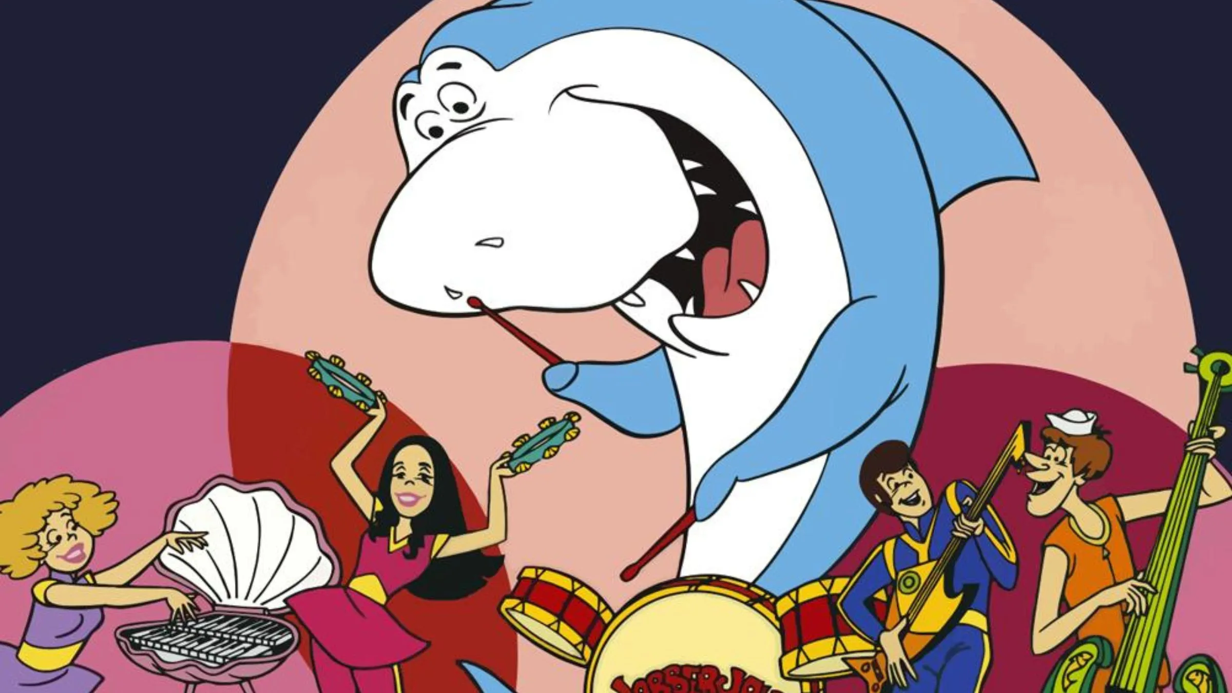 Premiering on ABC in 1976 and created by Hanna-Barbera, Jabberjaw took the popular formula from Scooby-Doo and applied it to the wave of shark-themed entertainment following the movie Jaws. The show was set in the year 2076, within an underwater world shielded by protective bio-domes. The main character, a 15-foot-long shark named Jabberjaw (voiced by Frank Welker doing a remarkable impression of Curly Howard from The Three Stooges), was the drummer for The Neptunes, a teenage rock band that traveled between underwater cities and battled supervillains trying to take over the ocean.