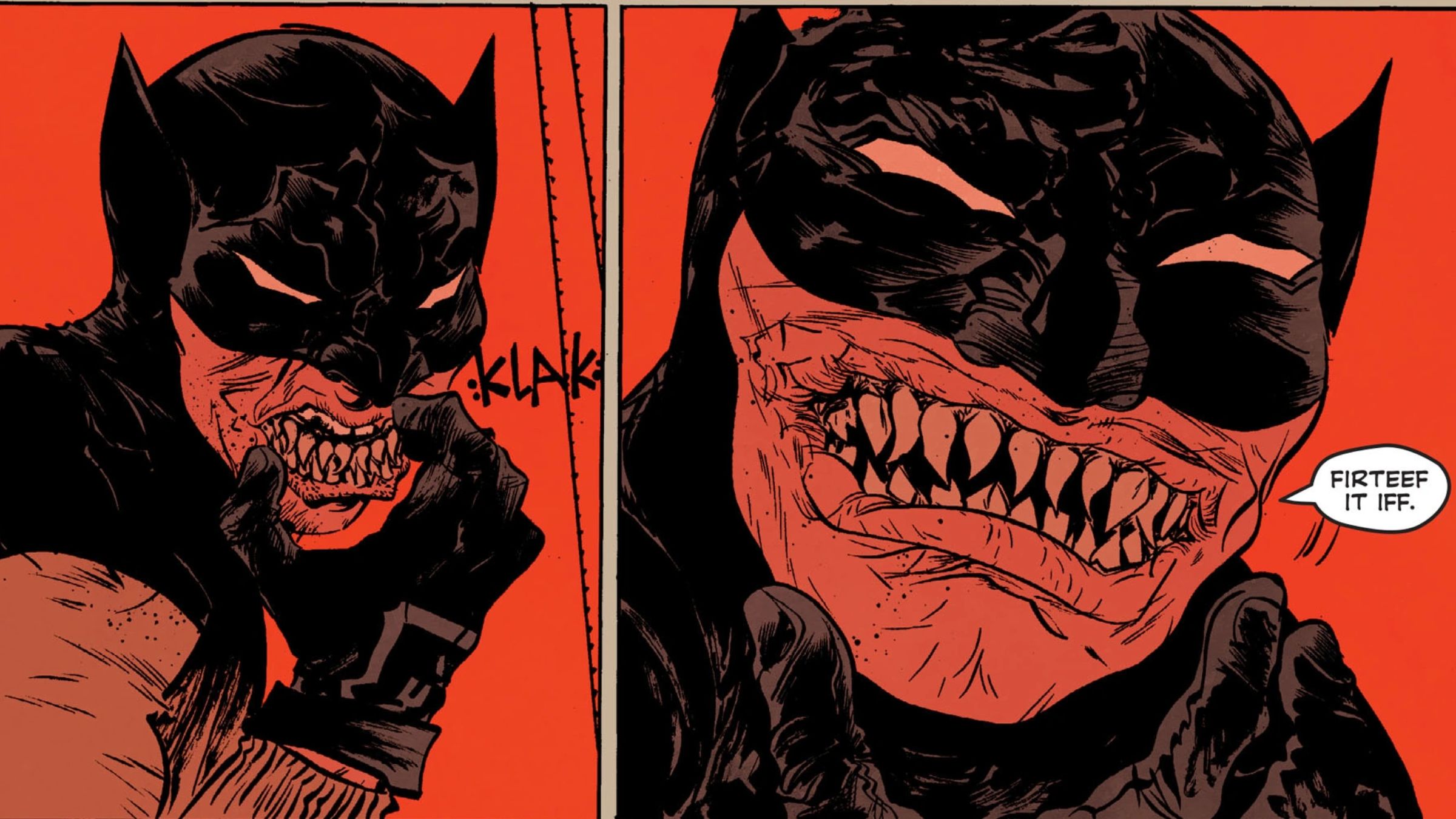 The movie The Batman opens by showing criminals nervously looking around dark alleys, clearly afraid of being caught by Batman. This establishes that Robert Pattinson’s version of the character relies on fear to intimidate them – so adding a frightening set of teeth would fit right in.