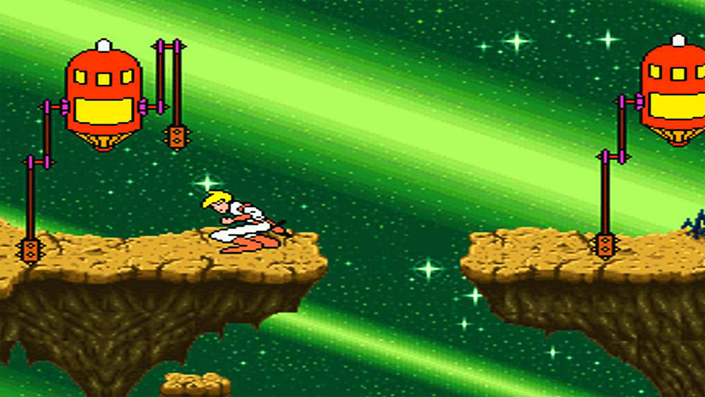 When LaserDisc games first appeared in arcades, they were a huge hit, and Space Ace quickly became a favorite. It played much like Dragon’s Lair and its sequel, but instead of a fantasy setting, Space Ace took place in space with a science fiction theme. In 1994, Absolute Entertainment tried to bring Space Ace to the SNES, but the port didn’t quite capture the magic of the original. Without the smooth, full-motion video, and replaced with only a few blurry cutscenes, the SNES version felt like a completely different game. What remained was a visually unappealing side-scroller with unreliable controls and gameplay that relied heavily on guesswork.