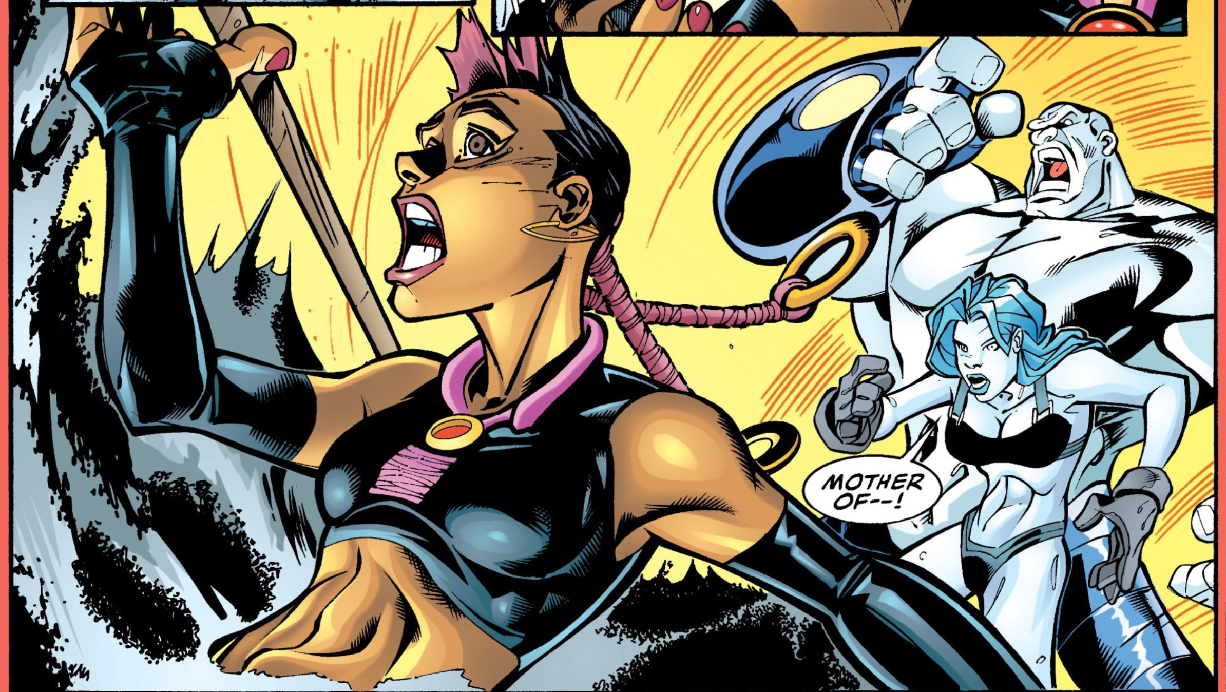 Wendy Jones, who used to be the villain Windfall, changed sides and joined the superhero team the Outsiders. But after a personal tragedy, she returned to villainy and was eventually imprisoned. Like other members of the Squad, she was offered a shorter sentence if she agreed to undertake dangerous, near-impossible missions. During one such mission in the Middle East, several teammates, including the massive, radioactive creature Chemo, turned against the group. When Chemo attempted to attack those who hadn’t joined the rebellion with toxic waste, Windfall created a protective shield. Sadly, the shield failed, and she was fatally dissolved by the acid, leaving only her bones.