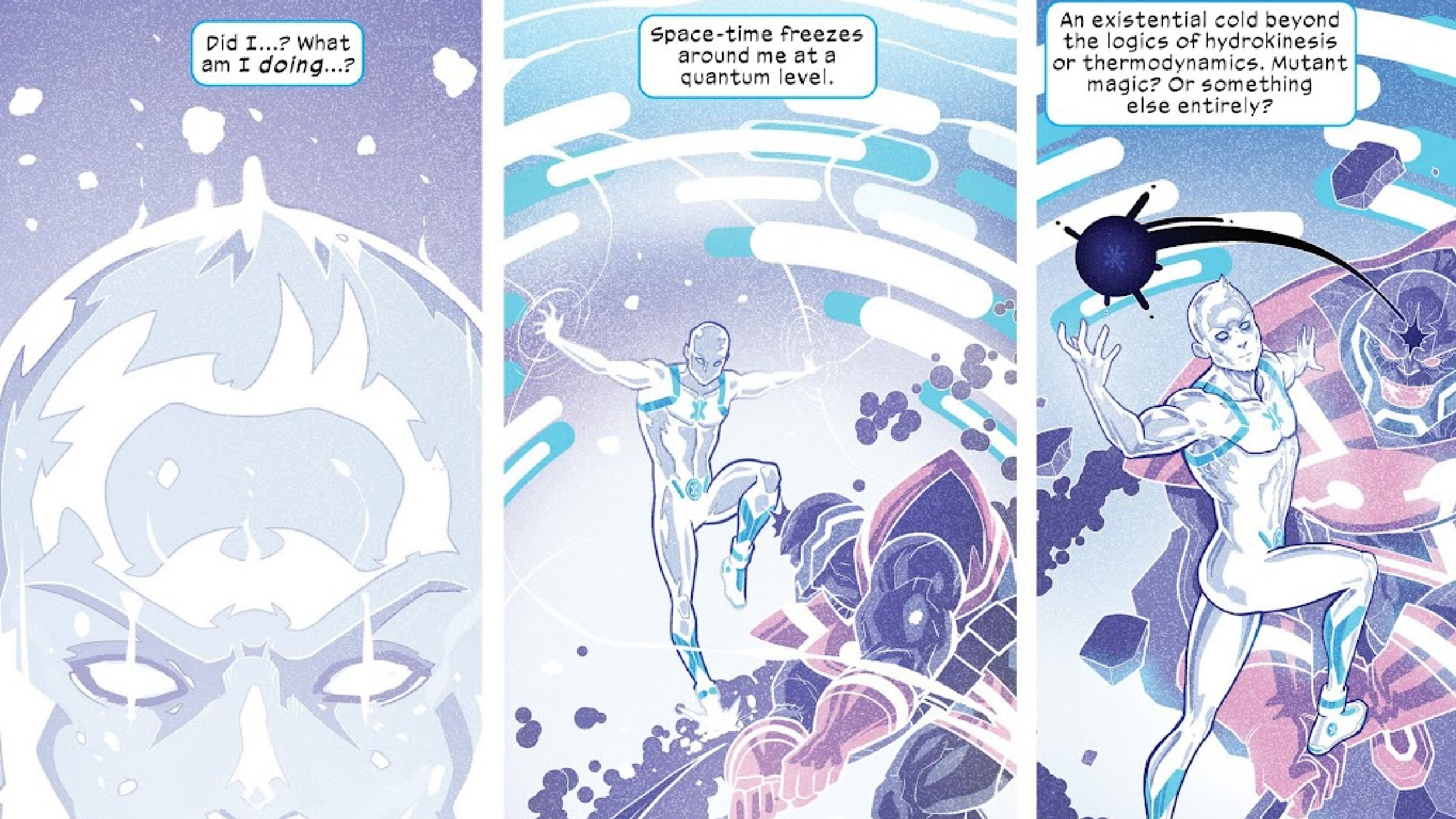 Iceman’s abilities have unexpectedly grown to the point where he can now freeze time and space around him, operating on a quantum level. This potential was hinted at in the Iceman: Omega storyline, where he met an ice demon, Ikthalon, who could freeze time. Iceman showed a natural resistance to this power, suggesting a link to the fabric of time and space itself. However, no one predicted that Iceman would eventually be able to use this ability himself.