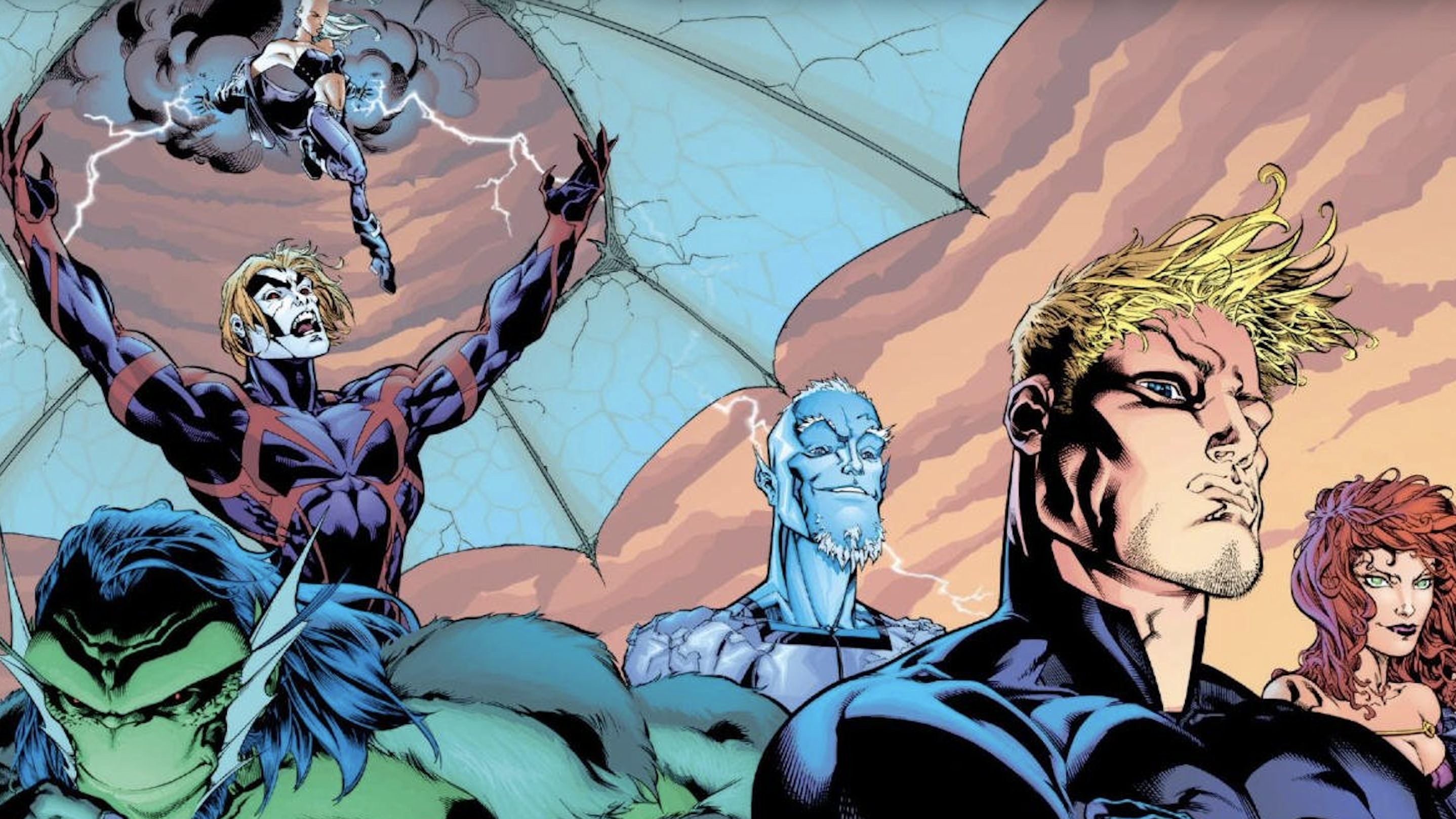 The Mutant X storyline features a mind-swap between Havok and his alternate self from a darker universe (Earth-1298). In this reality, Cyclops died young, and Havok took his place as the leader of a twisted version of the X-Men, known as the Six. This team is made up of radically different versions of familiar heroes: Beast transformed into a frog-like creature called the Brute, Storm became the vampire Bloodstorm, Iceman is permanently frozen, Angel became the winged hero Fallen, and Jean Grey’s clone, Madelyne Prior, is now the powerful Marvel Woman. The Six battle against corrupted versions of heroes like Professor X, Nick Fury, and the Avengers.