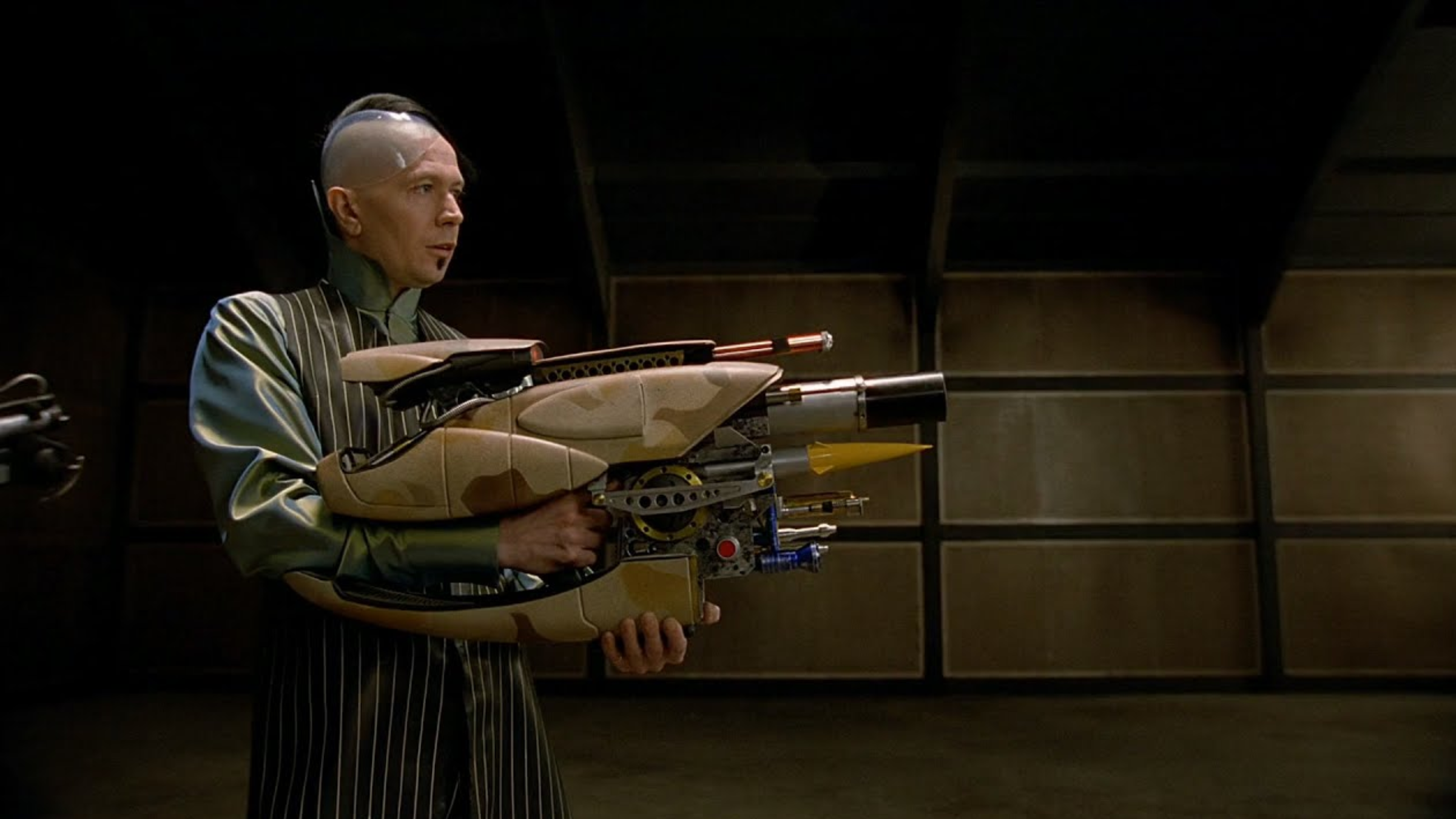 This movie weapon works well because it’s both funny and believable. The joke is immediately clear, but the film doesn’t downplay the serious consequences when the weapon is used. While it breaks the rules of physics for comedic effect, it still manages to feel impactful. It’s rare to find a sci-fi weapon that delivers both a laugh and a genuine threat with a single shot.