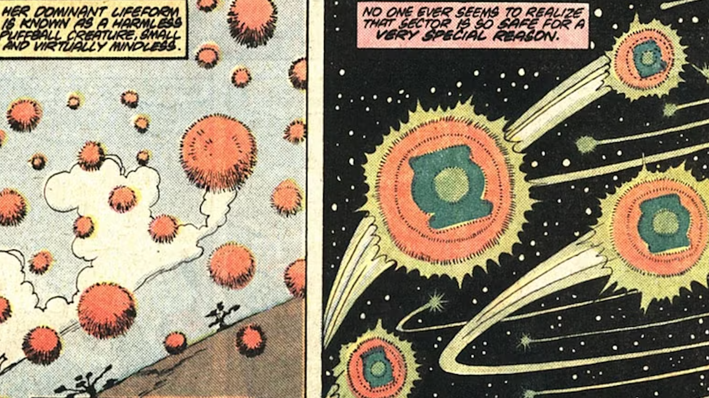 Space Sector 1287 is remarkably safe, and that’s because of the Green Lantern known as the Collective. When the previous Green Lantern, TO-T-U-K, decided to retire, he searched the sector for someone worthy to take his place. It seemed difficult at first, but he eventually discovered his successor wasn’t a single person – it was a vast network of tiny, floating creatures. These puffball-like beings aren’t very intelligent on their own, but when they come together, they possess the immense willpower needed to control a Green Lantern ring. Spread across billions of bodies and sharing a single mind, the Collective safeguards every part of their sector at the same time.
