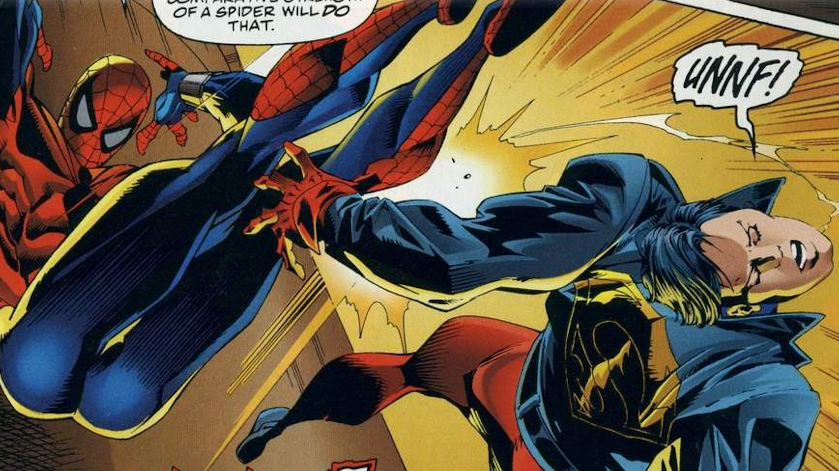 When Peter Parker’s clone, Ben Reilly, briefly became Spider-Man, he was drawn into a conflict between the DC and Marvel universes. During the DC Versus Marvel event, he fought Superboy, Superman’s clone. Despite Superboy’s incredible strength – capable of destroying buildings and battling other Kryptonians – Spider-Man won the fight. He skillfully dodged Superboy’s attacks, causing the young Kryptonian to accidentally destroy a water tower. Then, Spider-Man quickly webbed him up, and the struggling Superboy flew headfirst into an electrical box, knocking him unconscious.