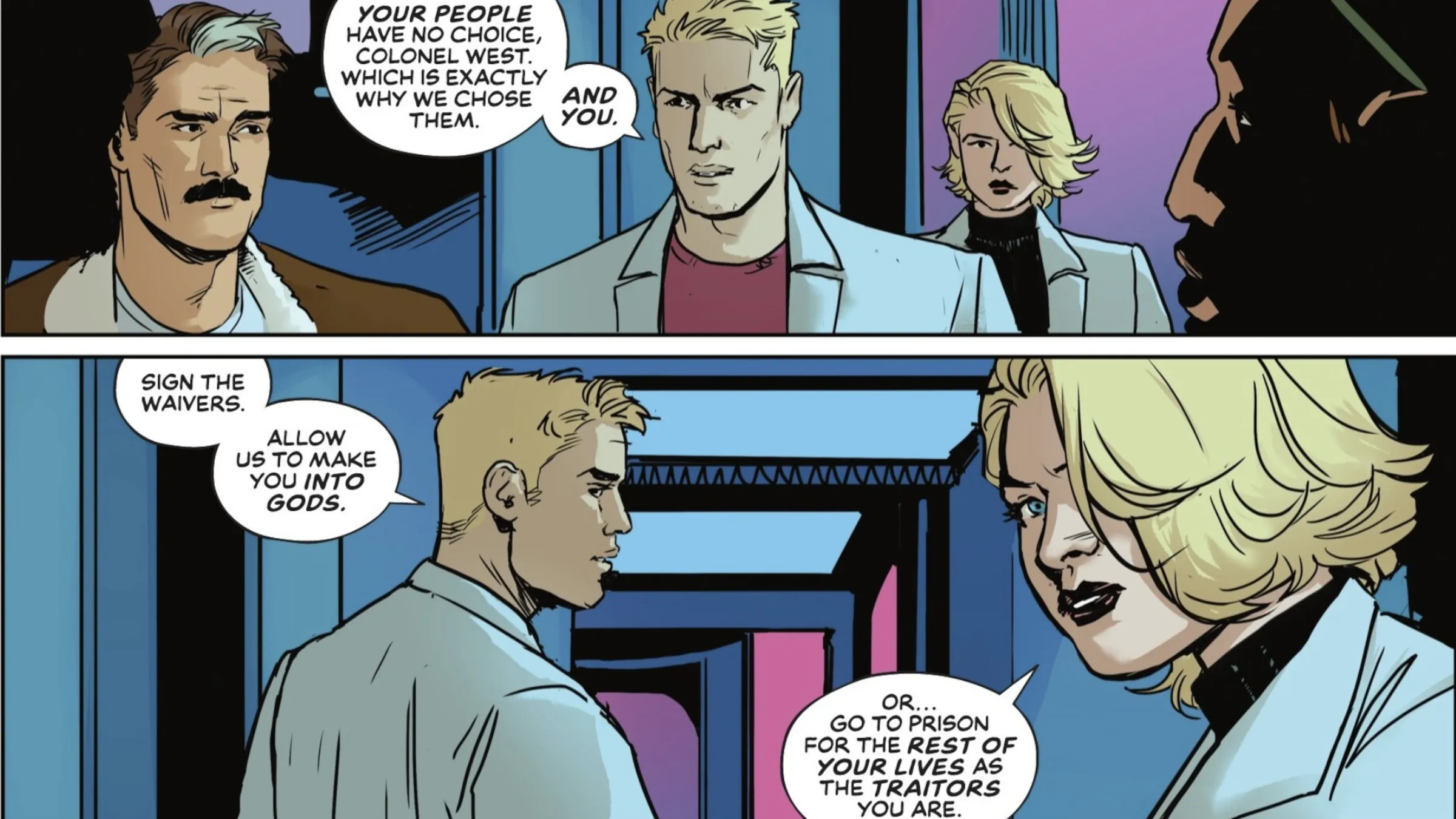 In issue #9, Elenore revealed she deliberately used Barry’s good nature to get him to befriend Wally – it was all part of her plan. This actually lessens Barry’s responsibility for what happened; he’s not entirely without fault, but he’s no longer a villain. He’s as much a victim of the situation as he is a cause of it. This shift in character might seem surprising compared to his early portrayal, and there’s a reason for that. Writer Jeff Lemire explained in an online Q&A that he initially intended Barry to be a full-on villain, but ultimately decided to make him a more complex, morally ambiguous character.