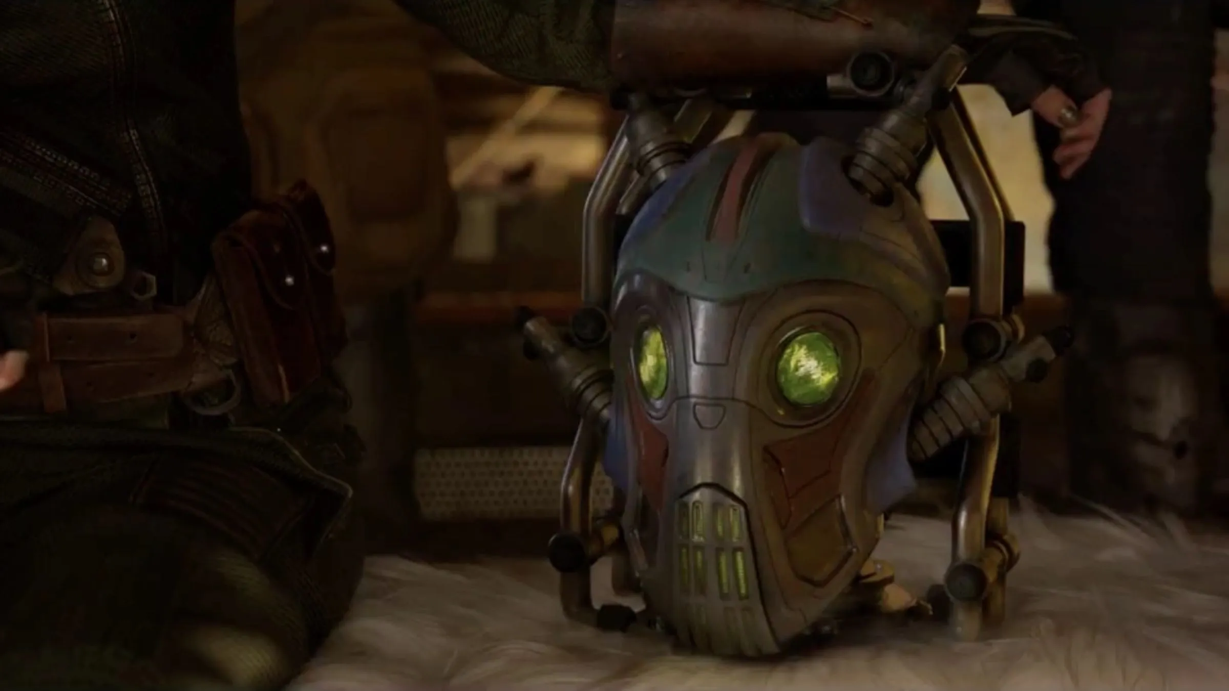Mainframe is a small, talking robot head who joined Stakar Ogord’s Ravager team. You might recognize her voice from Guardians of the Galaxy Vol. 2 – it was provided by Miley Cyrus! However, for Guardians of the Galaxy Vol. 3, Tara Strong took over the role, having previously voiced Miss Minutes in Loki. The change in voice actors was simply due to Miley Cyrus’s busy schedule.