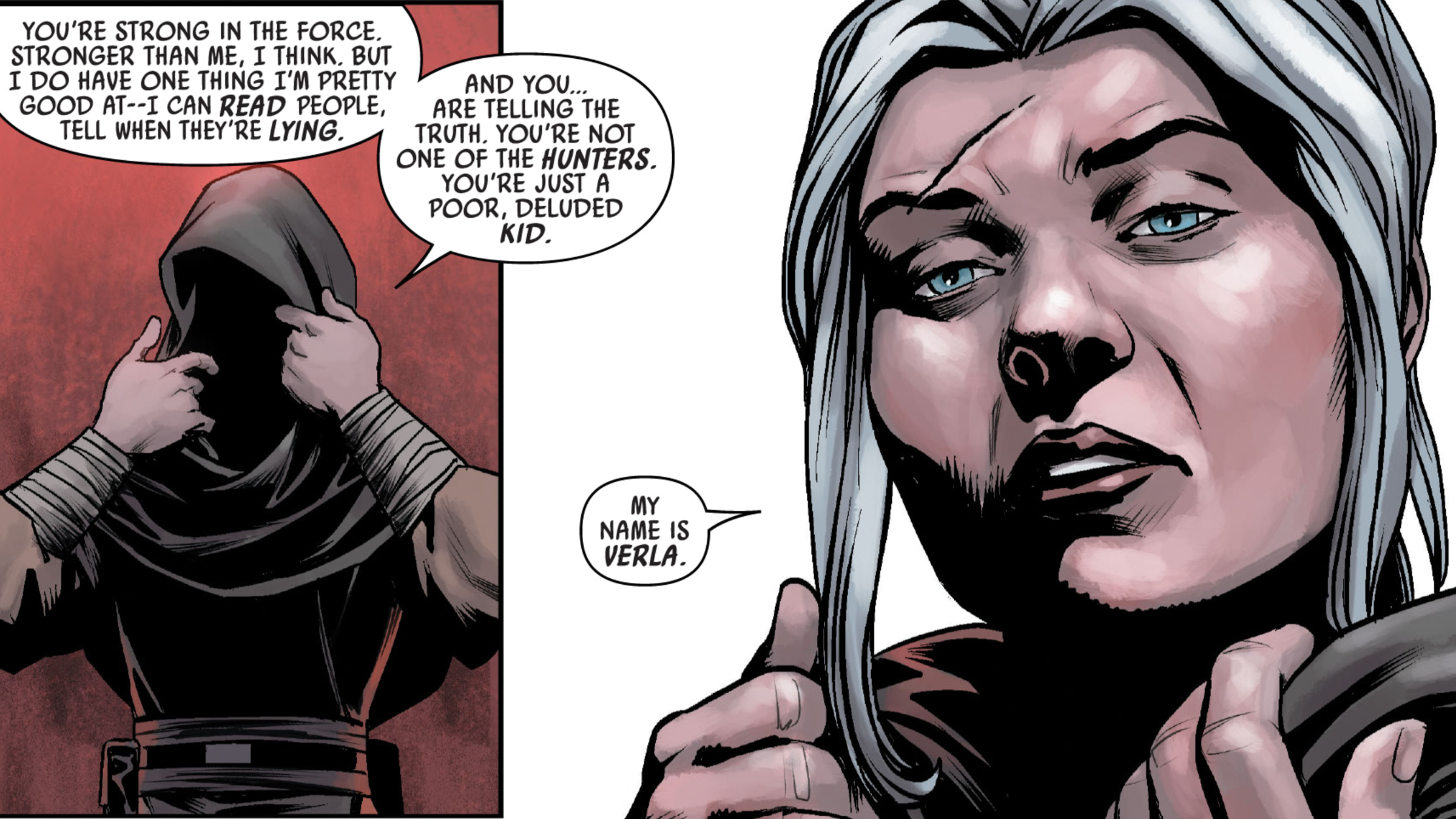 Verla was the last student of Ferren Barr and spent nearly twenty years hiding from Darth Vader and his Inquisitors. Her mentor had told her who Vader really was, but it didn’t seem important at the time. Everything changed when she met Luke Skywalker soon after the events of The Empire Strikes Back. Luke was traveling the galaxy, searching for lost Jedi knowledge, but their first encounter was difficult – Verla tried to kill him, hoping to get revenge on Vader.