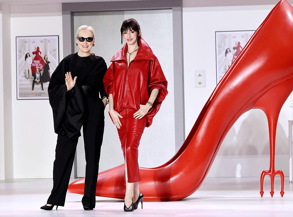 At the Times Square premiere, the actresses made a striking impression with their outfit choices. Anne wore a bold red Balenciaga dress with a dramatic, flowing bomber jacket and a sleek skirt. Meryl, meanwhile, chose a sophisticated all-black Celine suit and sunglasses.