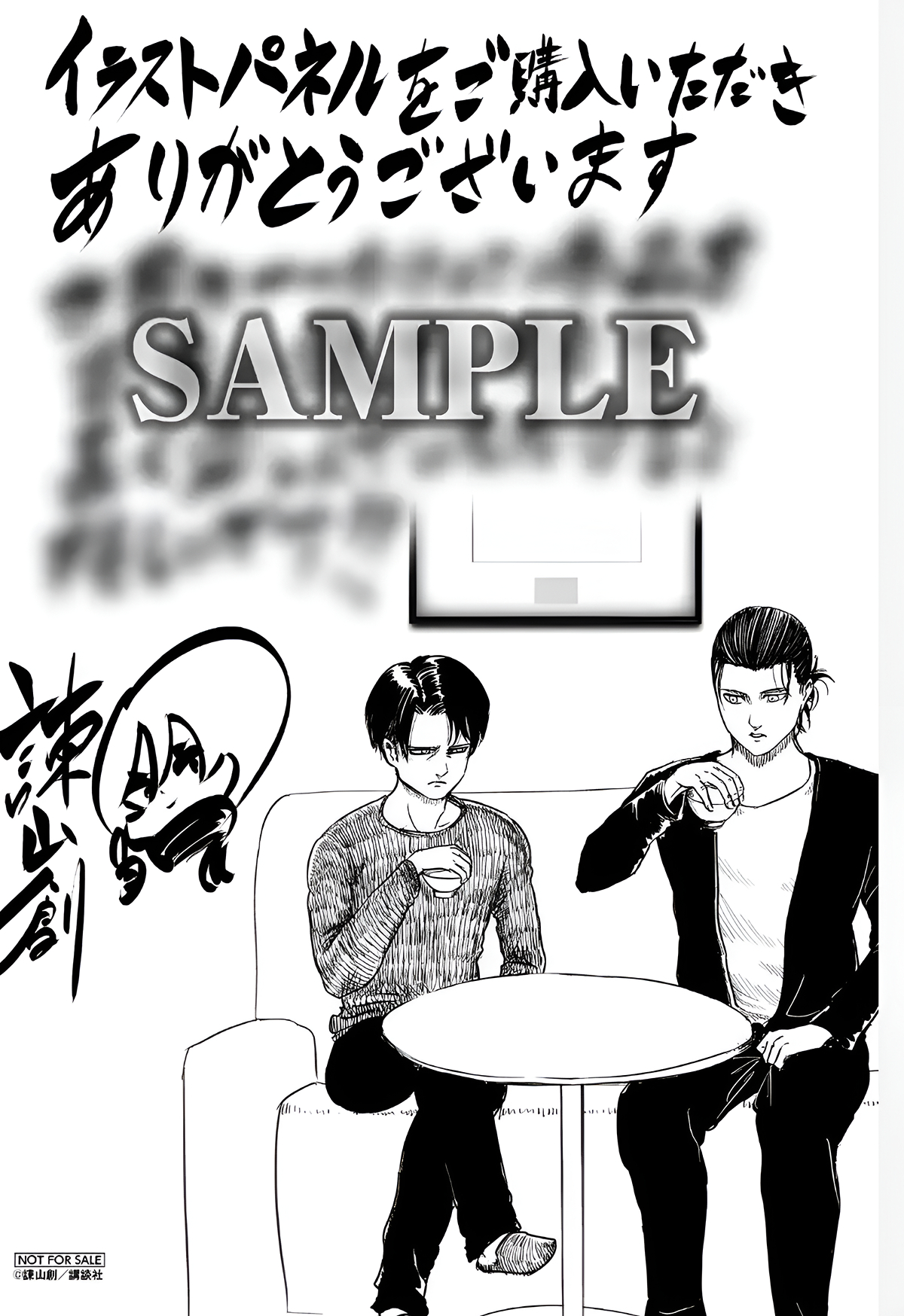 The artwork shows Eren and Levi sitting and talking over tea. It’s a scene that takes place after a significant time jump in the story, and it’s notable because Eren and Levi never actually get a moment like this together in the original narrative. Though both characters are very popular on their own, they aren’t often highlighted as a pair. Levi played a key role in Eren’s journey, rescuing him from certain punishment and bringing him into the Survey Corps after it was discovered Eren had Titan abilities.