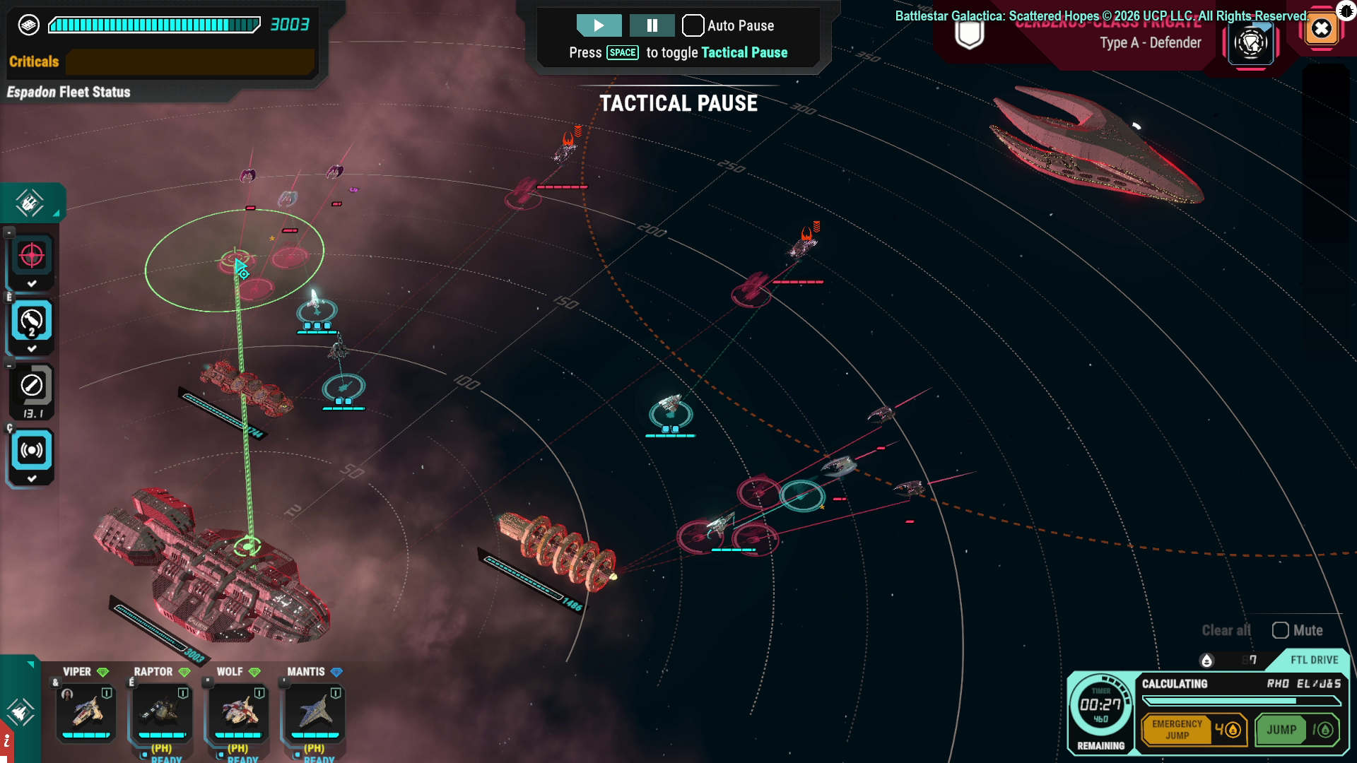At first, Scattered Hopes feels like a classic space strategy game, with fleets, squad commands, and real-time battles. But it’s actually built like a roguelike: each playthrough is different thanks to random events, evolving upgrades, and long-term progress. You won’t defeat the Cylons through sheer power – they’re a constantly stronger enemy meant to keep you on the defensive. Instead of trying to win by overpowering them, your goal is simply to survive long enough to charge your jump drive and escape to the next area. This changes how you make every decision in the game.
