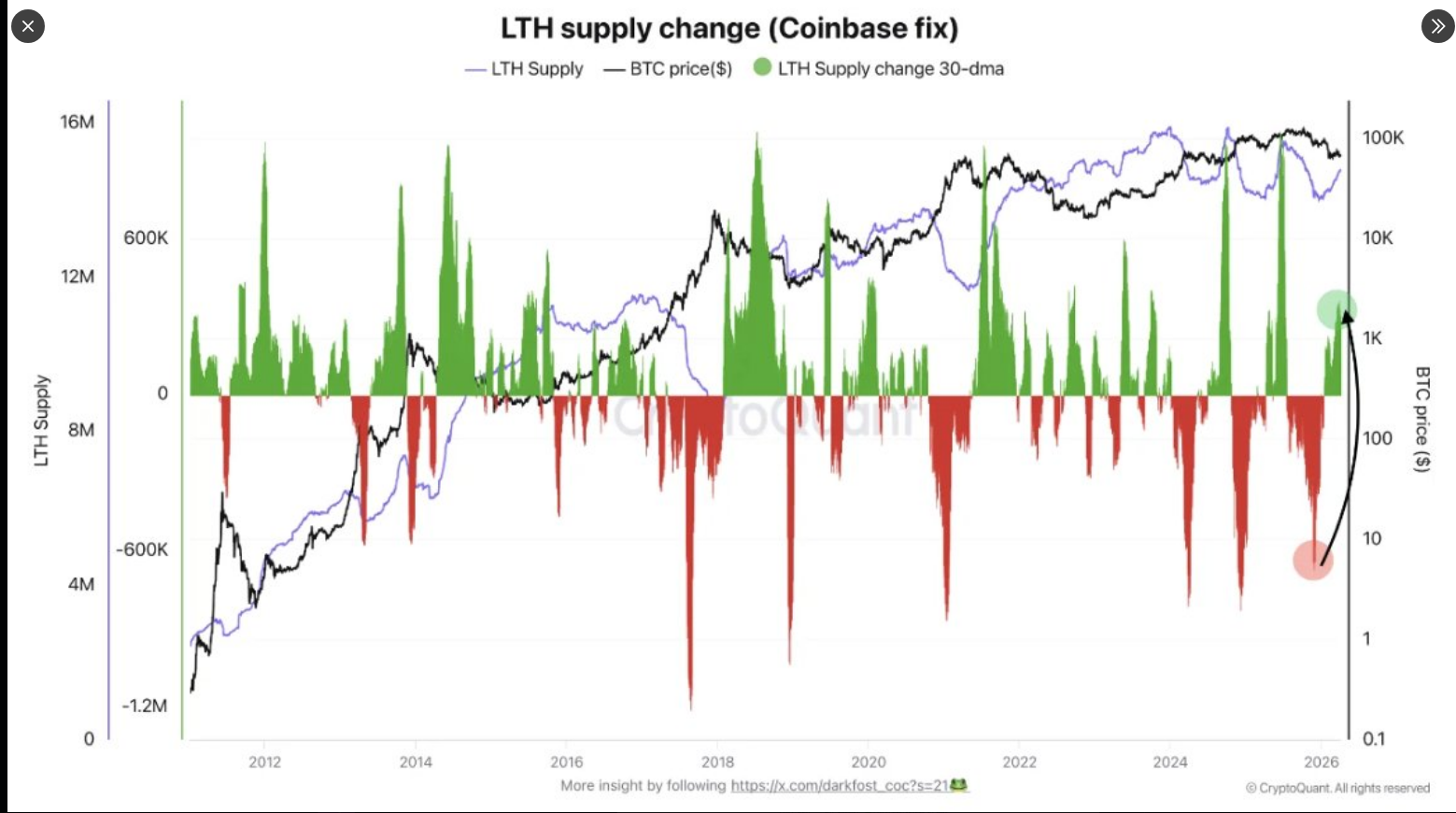 Bitcoin LTH Supply Turns Positive Again