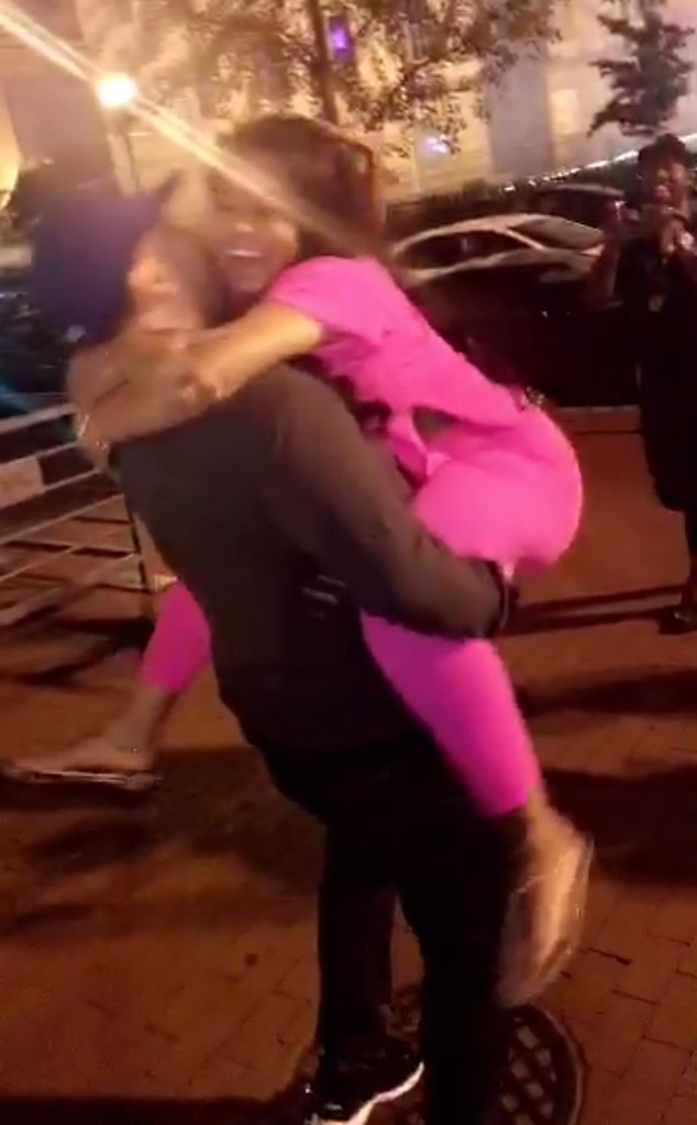 Rob lovingly carries his fiancée around in this pick-me-up pic.