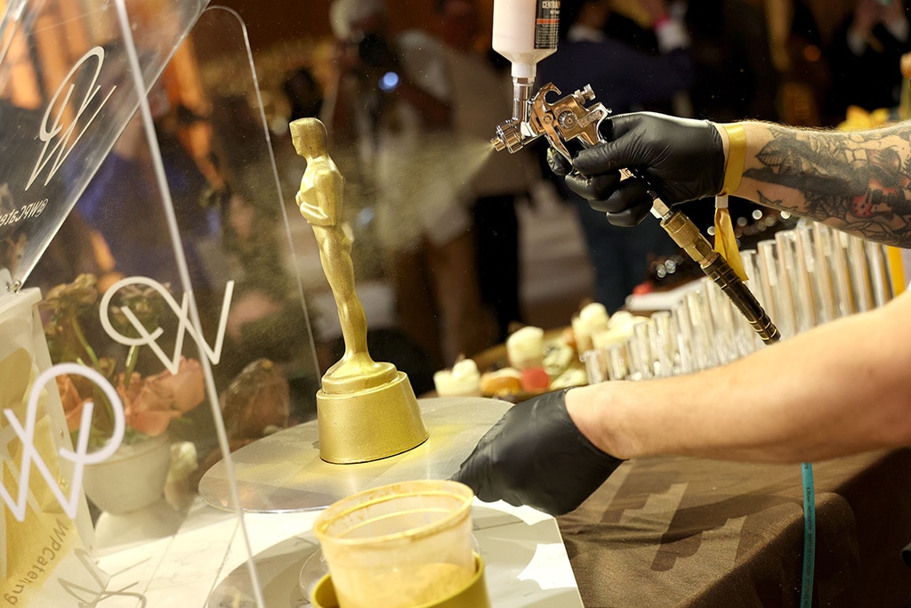 This photo was taken on March 10th at a preview event for the Governors Ball, held at the Ovation Hollywood Complex. It’s a behind-the-scenes look at where the award statues are engraved – a glimpse of how everything comes together.
