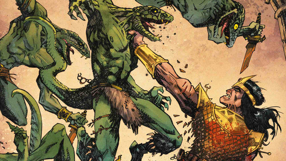 Conan: Scourge of the Serpent #1 tells a story through three different timelines. Though these stories appear separate at first, they’re all connected by a single threat: the Serpent Men, an ancient race who once controlled the world.