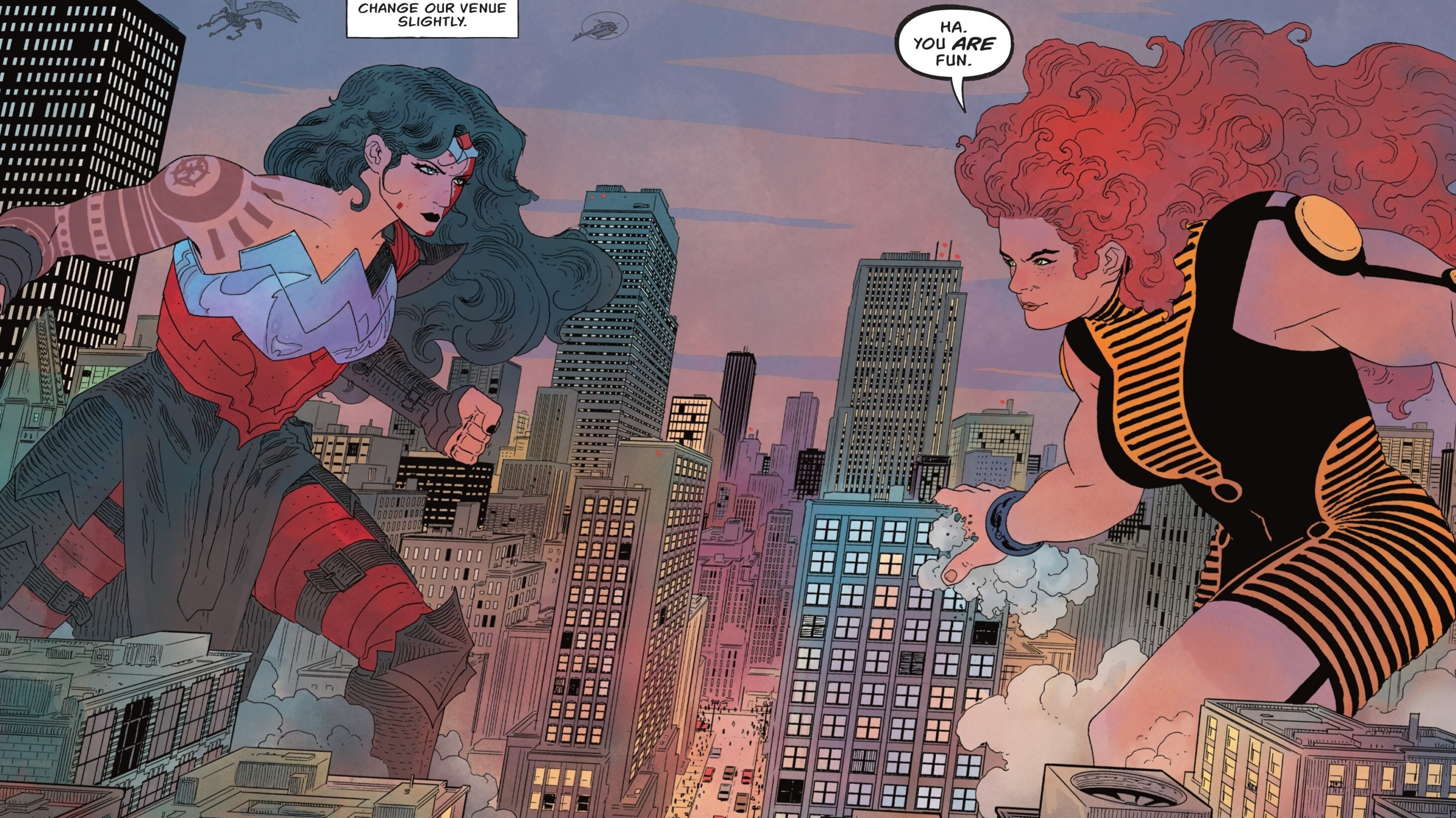 Wonder Woman quickly grew to match Giganta’s massive size and strength, landing a powerful blow. However, Giganta was resilient and continued to grow, trying to overpower Wonder Woman. Each time Giganta increased in size, Wonder Woman countered by magically matching her growth, fueled by strands of Giganta’s hair she plucked away. Realizing their escalating battle could harm Gateway City, Wonder Woman moved the fight to a remote island. There, she subdued Giganta by choking her until she lost consciousness.