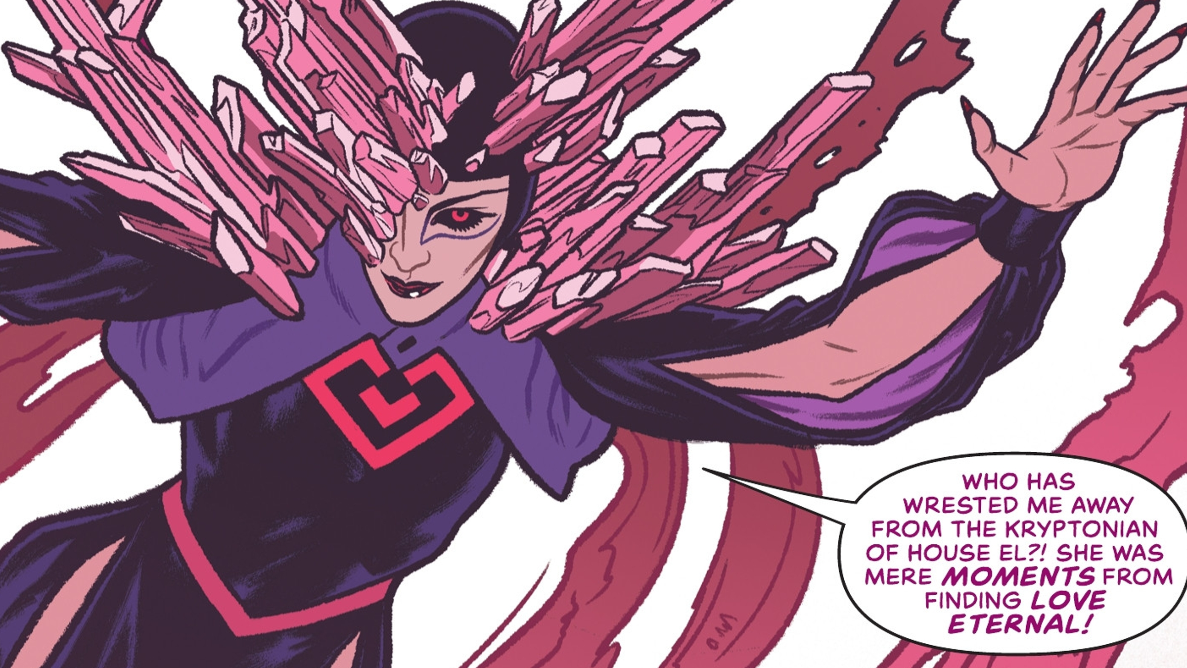 In issue #10 of Supergirl, Kara finally gets to know the attractive man she’s been interested in. However, their date takes an unexpected turn when Kara discovers his earring is a piece of pink kryptonite. This shard isn’t just dangerous; it contains the remnants of Nela-Nar, a Kryptonian woman determined to continue the work of her planet’s dating system, Matricomp. Luckily, Supergirl manages to separate and contain Nela-Nar, preventing Kara from falling in love against her will.