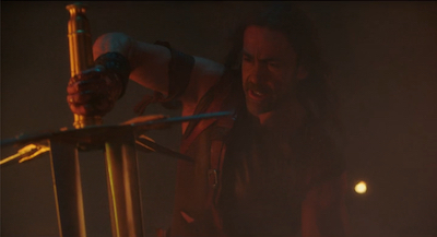In the end, somehow, I cared about Deathstalker learning to work with others. But even if you hate emotions and bonding and what not you will enjoy seeing heads get chopped, sawed and smooshed. We all like that kind of stuff, right? Actually my friend Matt Lynch found this movie annoying and turned it off about two scenes in, and I guess I can understand that. But I think some of you will be on its wavelength, and I know for sure that all true fantasy fans will never again worry about George Ramrod Martin finishing Game of Thrones, and won’t even bother to hold on to their dumb old Tolkein books, because how do you keep ‘em in the Shire once they’ve journeyed to the Kingdom of Abraxeon? There’s a new Lord in town and he has a sword that’s way bigger than the one from THE SWORD AND THE SORCERER and has one extra blade.
