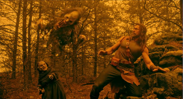 The movie clearly draws a lot of inspiration from Army of Darkness, but the main character isn’t quite as silly as Ash. The director knows he’s leaning into those influences, and while it’s over-the-top, it’s not played for laughs. The film opens with a knight quickly overwhelmed by a horde of monstrous creatures resembling a mix of Psycho Goreman and Power Rangers villains. Just when it seems hopeless, a hero arrives in dramatic slow motion, his face mostly hidden. He expertly defeats the monsters, showing more skill than previous installments of the series (at least the first two – I haven’t seen parts 3 and 4 yet). But after the battle, he immediately starts looting the fallen knight, taking his rings and even an amulet hidden under his armor, ignoring the dying man’s protests.
