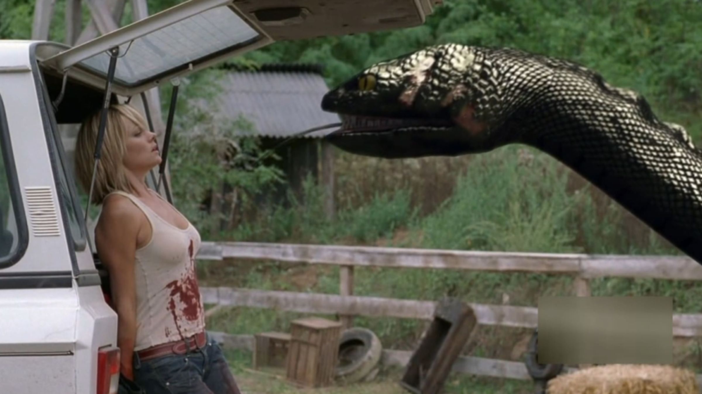 The movie Anacondas: The Hunt for the Blood Orchid has one truly memorable scene, and it’s the one you likely saw in the trailer – the scene with the boat going over the waterfall. It features the group wading through a river, with a dramatic overhead shot of a huge snake swimming between them. A crew member playfully tries to scare a colleague by humming the Jaws theme, but he’s suddenly pulled under the water. She initially thinks it’s still a joke, until an anaconda explodes out of the water. Honestly, just watching those three minutes is enough of the movie.