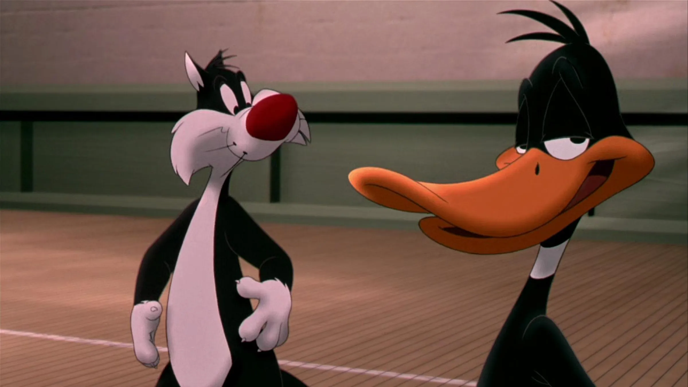 Daffy Duck, a classic Looney Tunes character who’s been around since the 1930s (appearing in more cartoons than all but Bugs Bunny and Porky Pig during animation’s golden age), will be featured in Coyote vs. Acme. While he’s only briefly seen in the trailer, he delivers the line “Ac-me? Ac-you!” and a quick visual gag shows his eyes briefly transforming into the Acme logo, hinting he might be working with them. This effect is a classic cartoon trope, usually used to show a character’s greed or affection.
