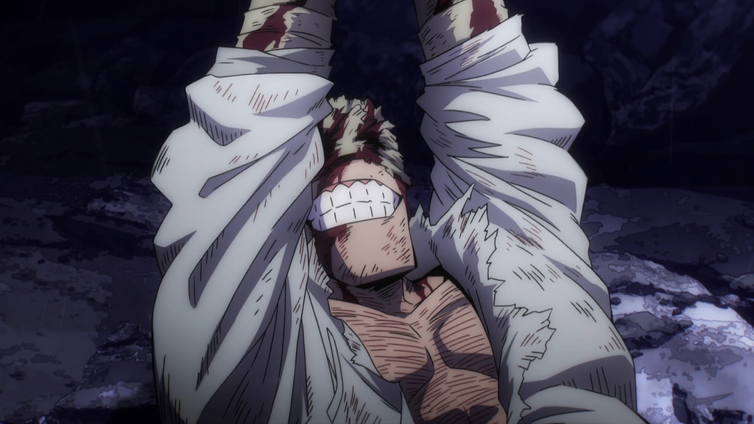 During the final battle, Aizawa desperately tried to connect with the part of Kurogiri that still held the memories of Shirakumo, hoping for assistance. However, Kurogiri’s loyalty to Shigaraki was too strong to overcome. As a result, Kurogiri attempted to prevent Izuku from defeating Shigaraki after All For One was defeated, but Bakugo intervened and killed Kurogiri, allowing Izuku to finish the fight.