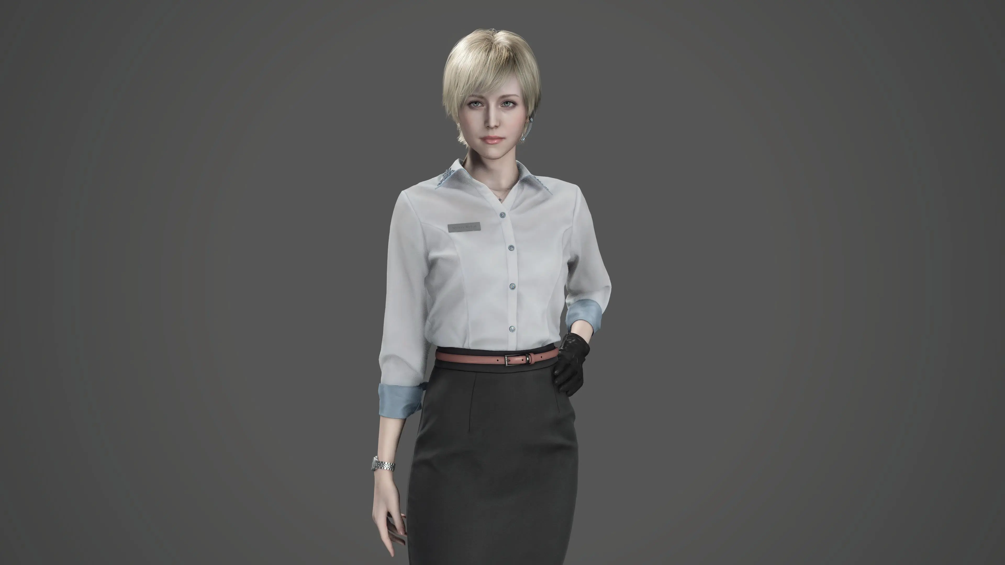In Requiem, Sherry doesn’t directly control the action; she assists Leon as a support character. Working remotely as a hacker, she provides Leon with information and guidance as he searches for Grace and tries to find a cure for the infection they both share.
