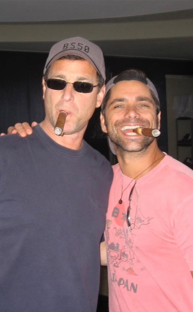 A nostalgic photo shows John, known for his role as Jessie Katsopolis on Full House, and Bob posing with cigars. Another picture captures them happily enjoying a day at the beach.
