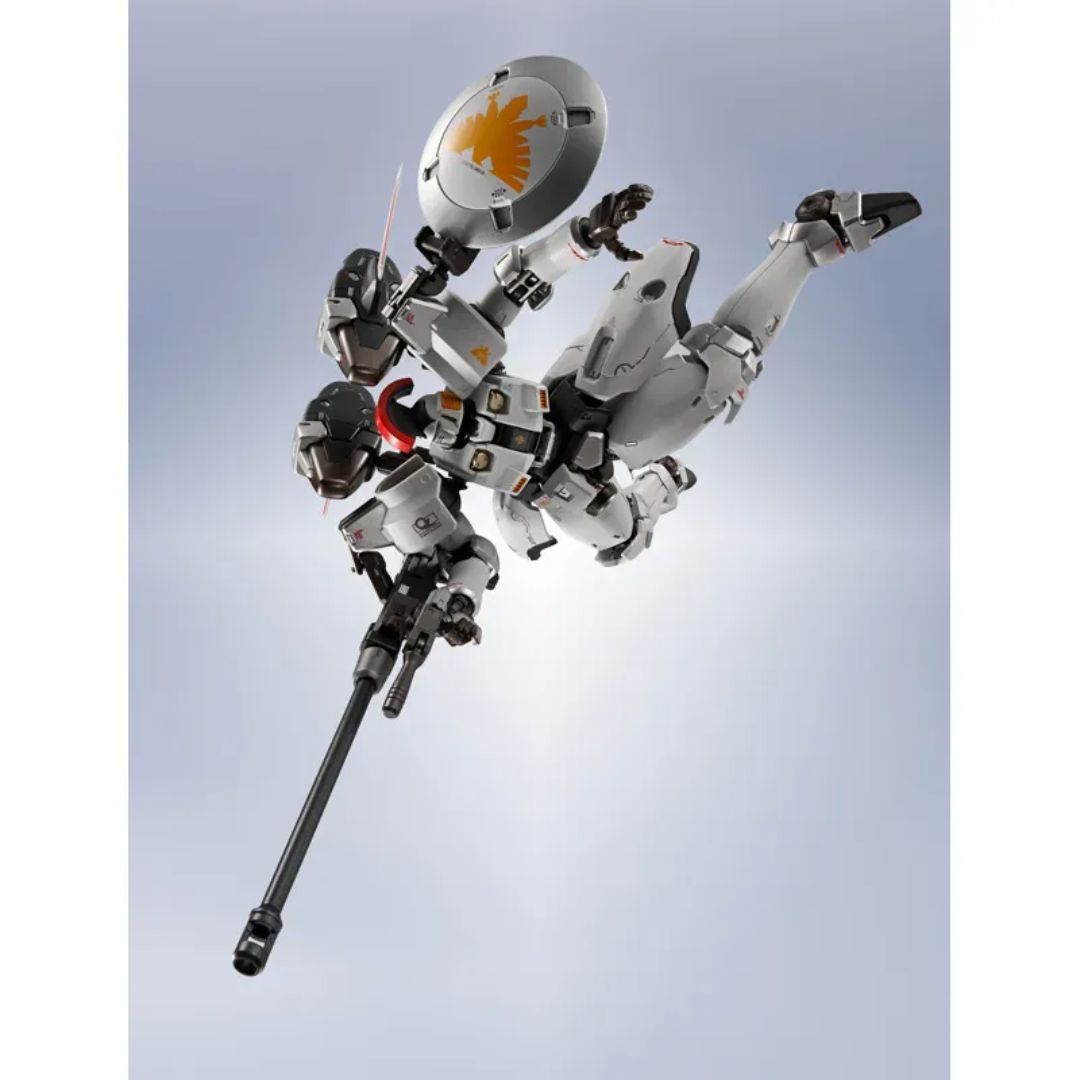 This new action figure is made with metal parts, giving it a solid feel and helping it stand firmly. It’s incredibly flexible and designed to look like it’s in motion, especially in the legs and armor. This allows it to pose and recreate the fast-paced action scenes from the anime, even though it has a large backpack. It comes with a powerful Dober Gun that extends and has an arm to keep it stable. In addition to the gun, it includes two Beam Sabers, a shield, and several interchangeable hands. A set of extra joints and a stand are also included for posing and displaying the figure.