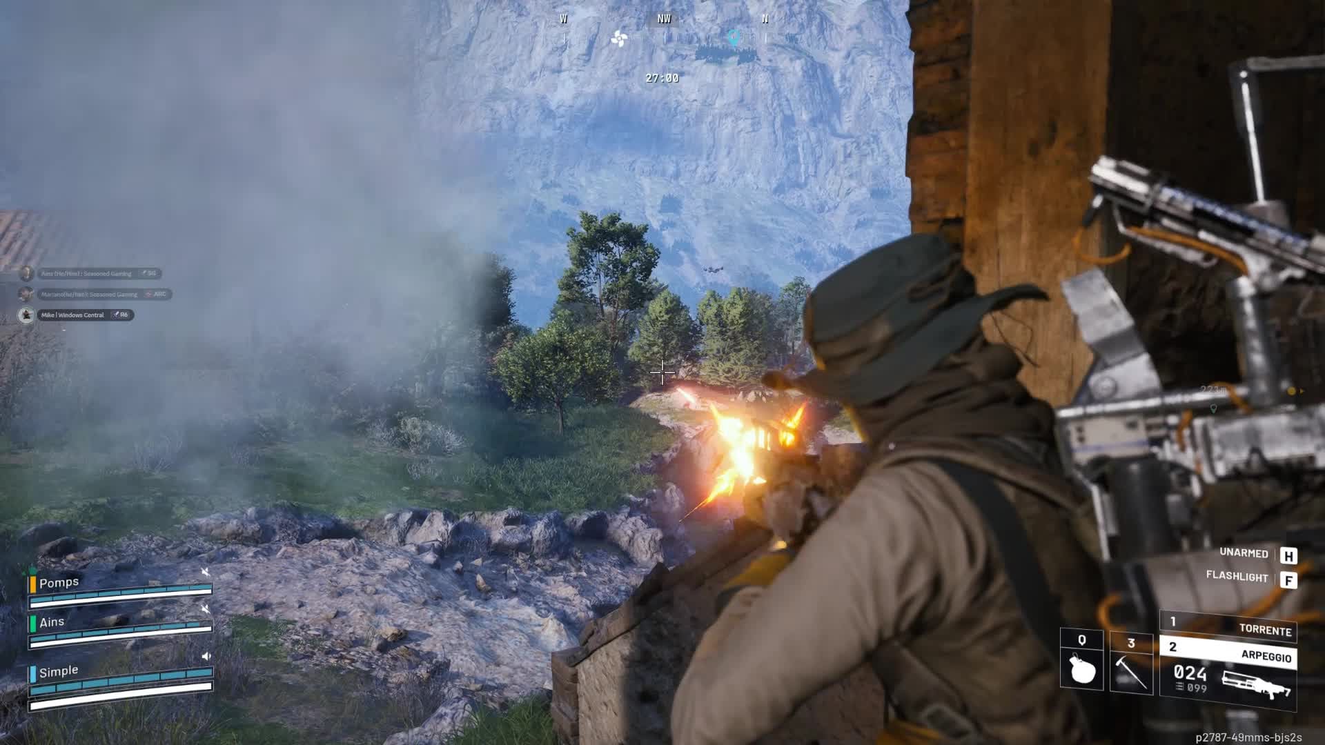 The town was filled with various AI enemies. When players began pursuing us, they immediately drew the attention of all the AI, triggering a chaotic firefight. Both the AI and the opposing players – every single one of them – were quickly defeated.