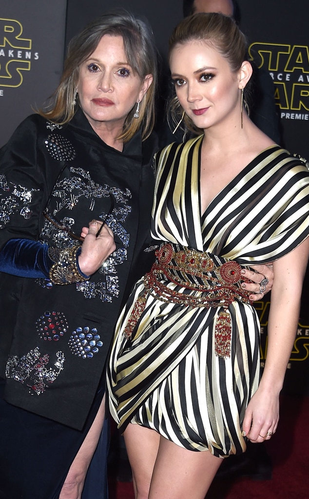 Billie and Carrie attend the premiere of Star Wars: The Force Awakens, which stars them both.