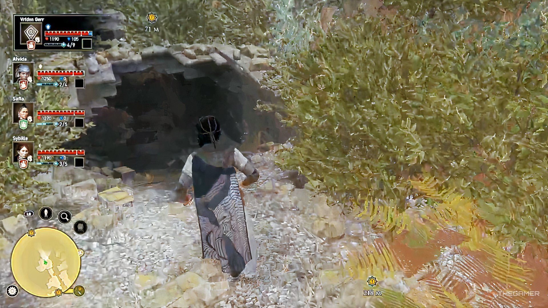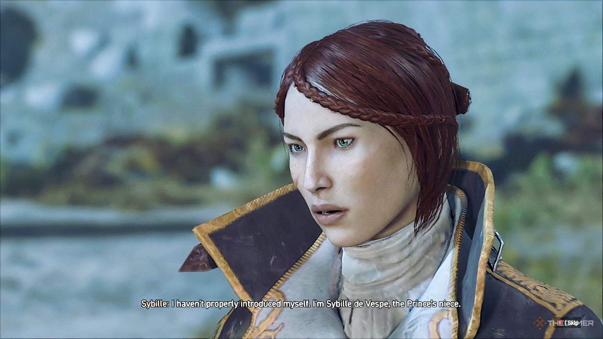 Leave the city and head a little past the vineyard. You’ll encounter some guards along the way. Have Sybille speak with them, and they’ll allow you to pass.
