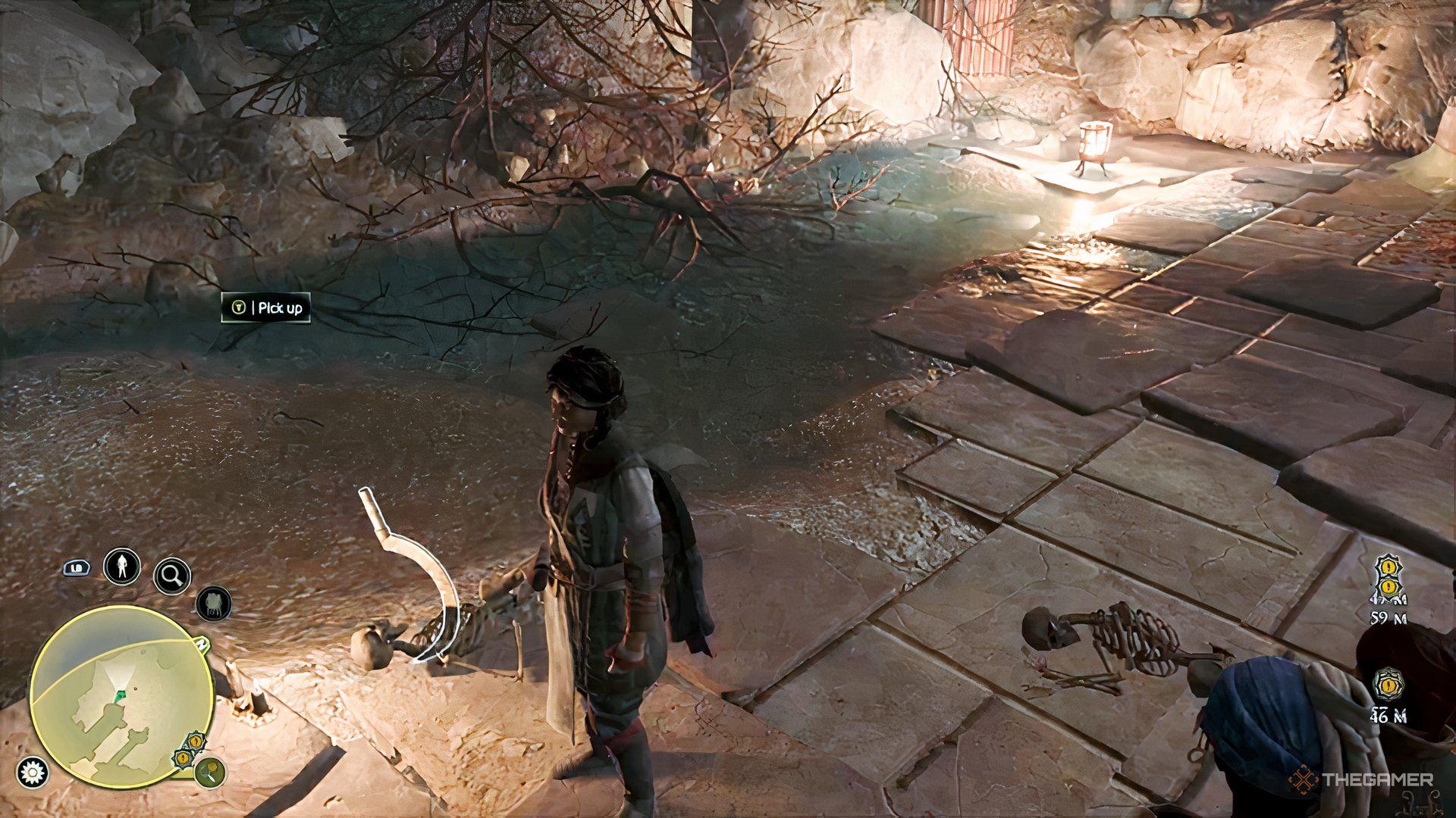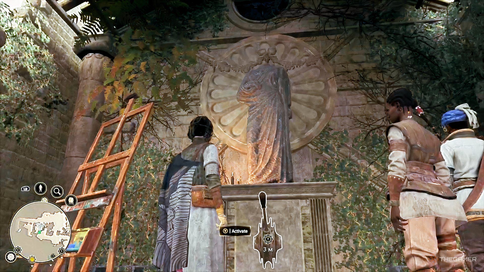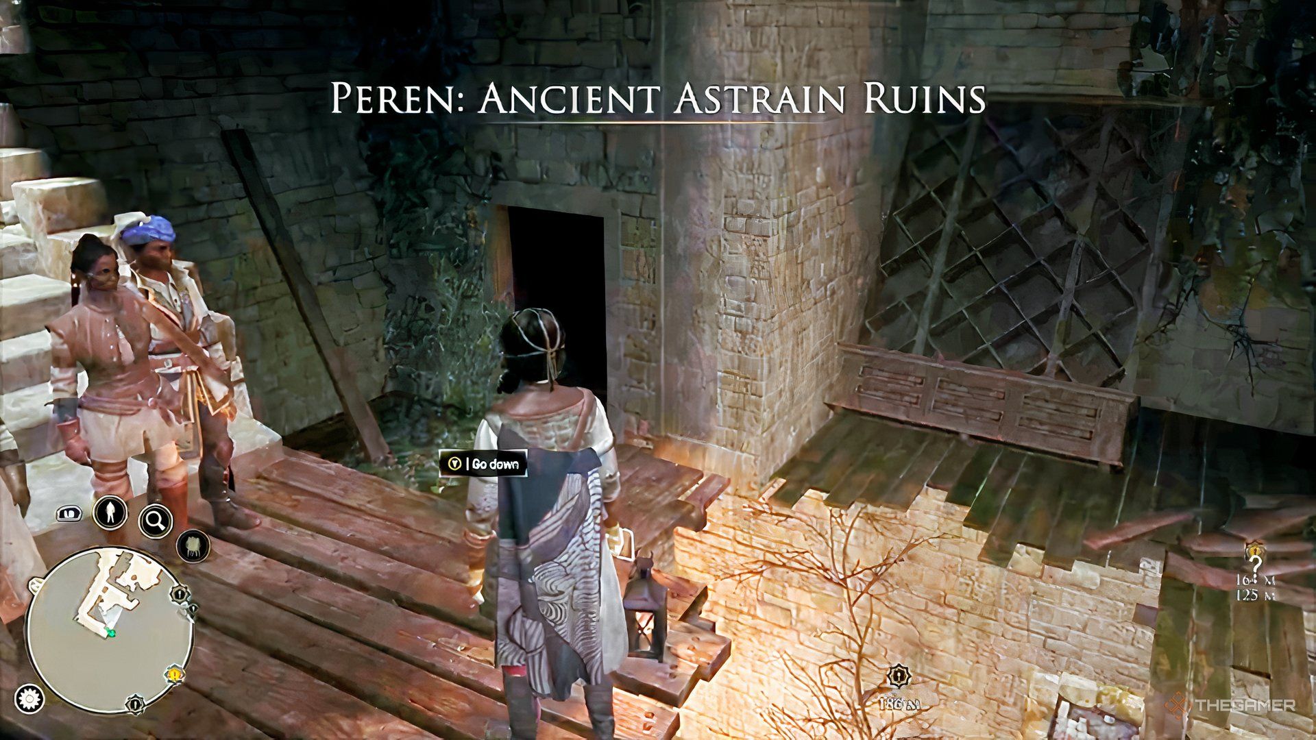 Speak with Garip and tell him a story about why you’re visiting. Get to know the rest of the team – they’ll let you know the ruins are full of dangerous creatures and hidden traps, so be careful where you walk. While you’re looking around, the team will work on getting the old wooden elevator up and running.