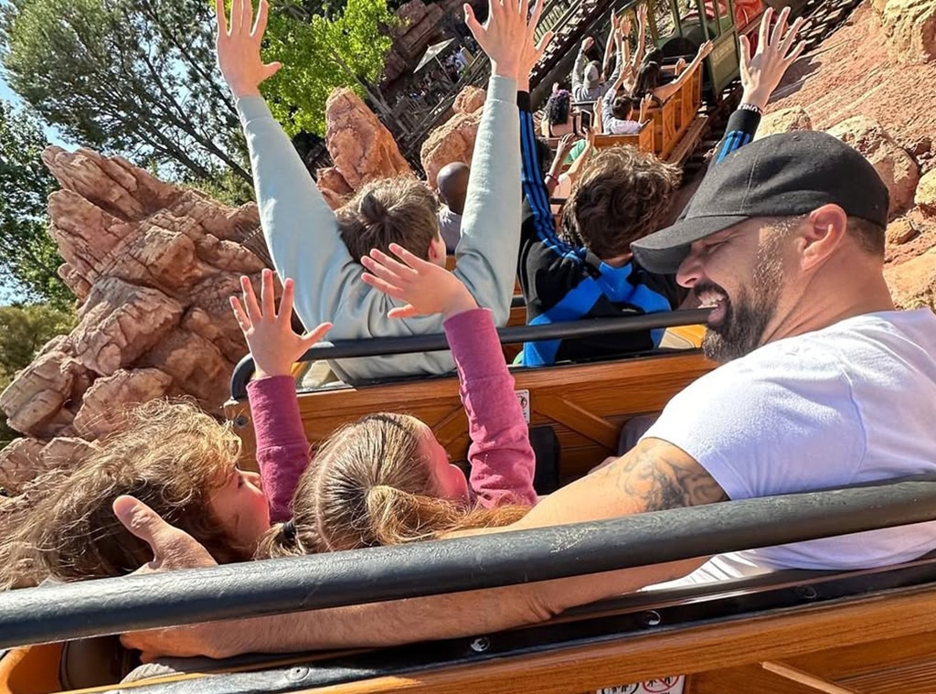 Martin shared a photo from Disneyland on May 26, 2024, calling it a perfect day with his four kids and himself. He captioned the picture, “4 kids and a happy dad!”