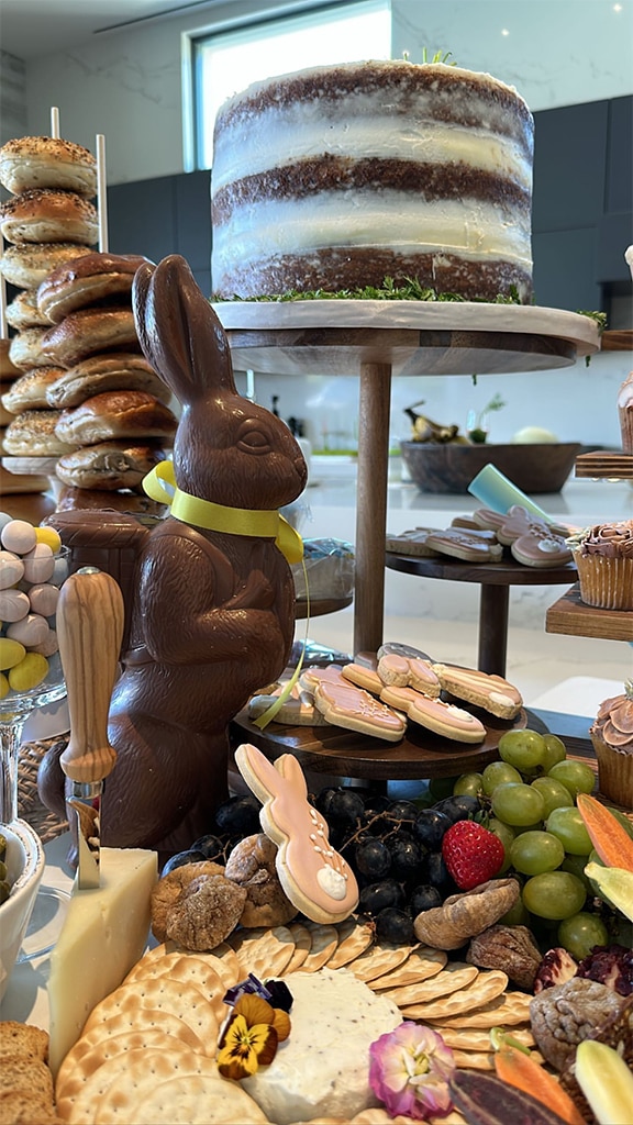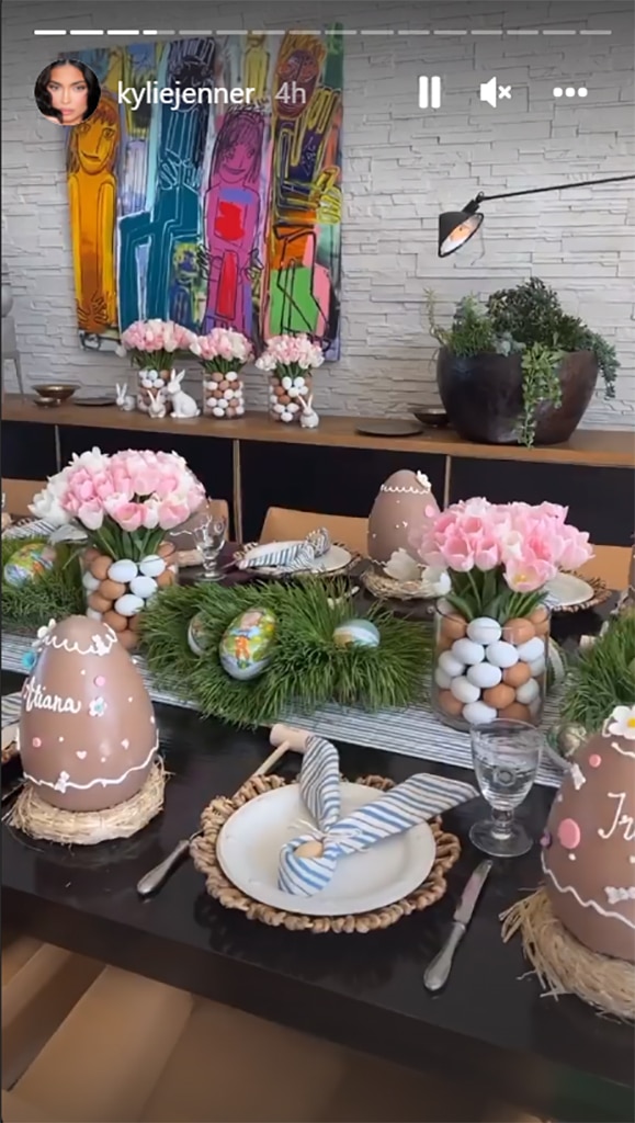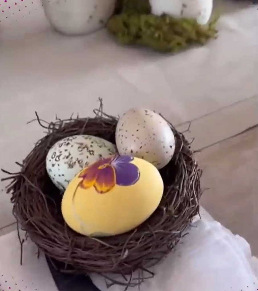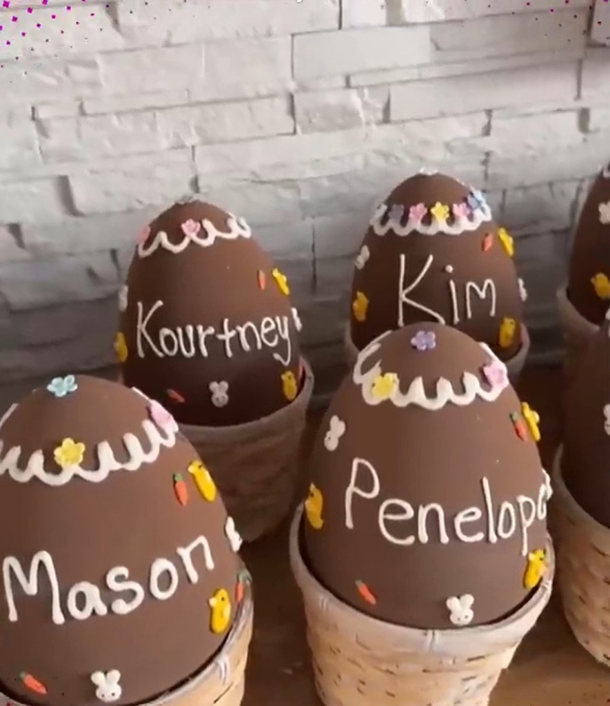 Kim Kardashian shared a photo on Instagram in 2022 of her mom’s beautifully decorated table, complete with a large, personalized chocolate egg at each place setting. She exclaimed, “How cute!” and noted that even adults would appreciate it.