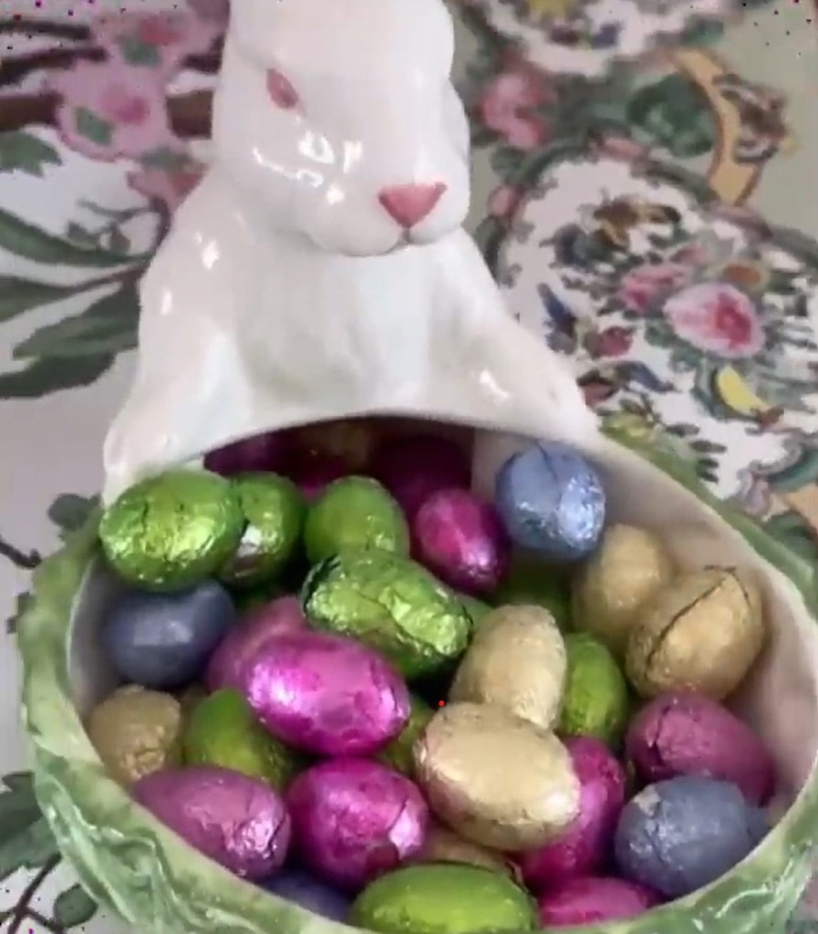 Looking at the brightly colored, foil-wrapped eggs in the bunny-shaped dish, she explained that these were a childhood tradition from her parents’ home. Her mother had saved these special items to keep the feeling of magic alive.