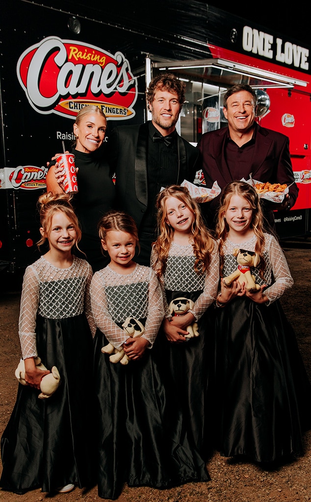 Oh my gosh, did you SEE the quarterback’s daughters?! They were absolutely stunning! They all wore these long, gorgeous black dresses with these amazing silver mesh sleeves – honestly, they looked like quadruplets! The twins, they let their hair flow with these beautiful curls, but Hunter and Tyler went with updos, which was so chic. And when their dad brought them on stage with him to accept his MVP award? I nearly died! It was the cutest thing ever, and then they all went to Raising Cane’s for chicken fingers! A glam family outing – seriously, my heart couldn’t handle it! I’ve already screenshotted every picture I could find.