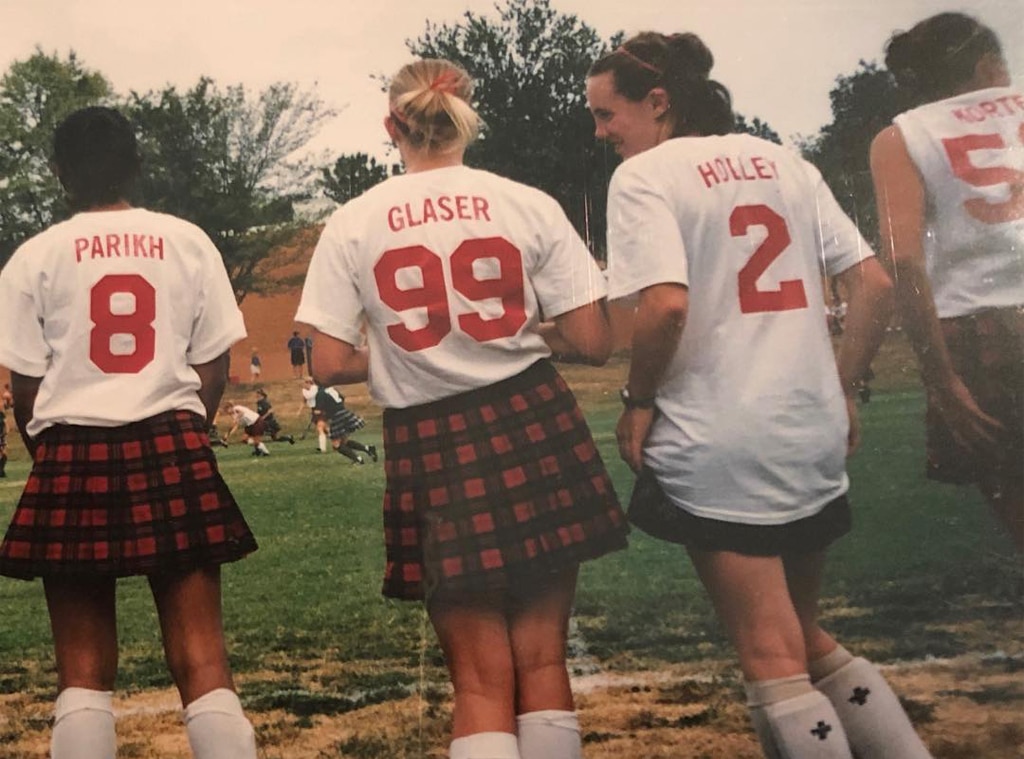 Glaser posted another old field hockey photo on Instagram, showing her and her teammates playfully posing like the stars of Charlie’s Angels while still in their sports uniforms.
