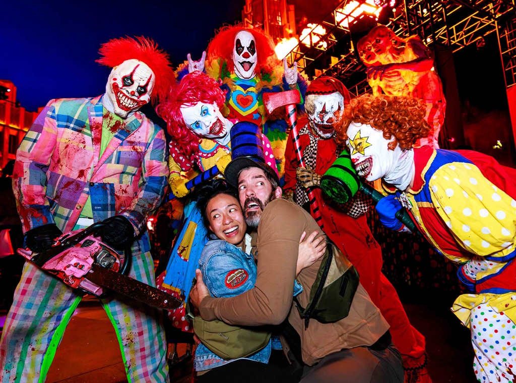 Property Brothers host Jonathan Scott and his wife, Zooey Deschanel, supported each other while experiencing the thrills and frights of Halloween Horror Nights at Universal Studios Hollywood on September 28th.