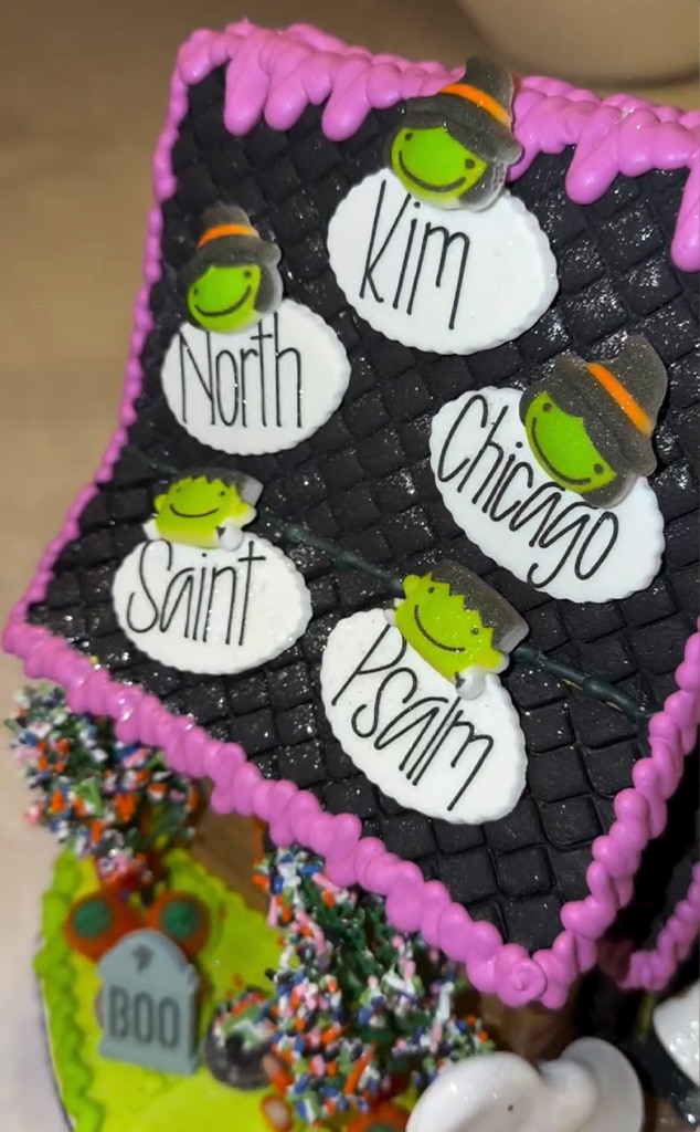 That wasn’t the only spooky surprise, though. Kim’s children-North, 12, Saint, 9, Chicago, 7, and Psalm, 6 (who she shares with her ex, Kanye West)-were also excited for Halloween. She then shared that her sister Kourtney Kardashian and Travis Barker gave the family a gingerbread house as a gift. It was decorated with ghosts, witches, trees covered in candy, and tags with each of her kids’ names.