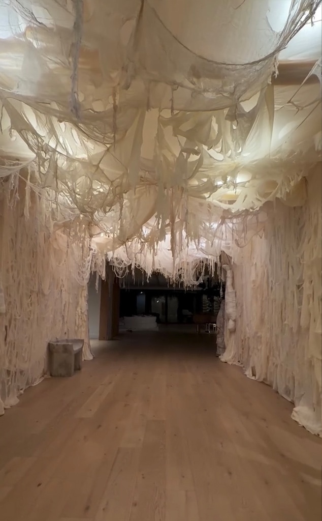 Okay, so I was checking out Kim’s Instagram Stories from October 2nd, and let me tell you, her Halloween setup is *intense*! She transformed this long hallway into something straight out of a spooky movie – honestly, it looked like an old cave with tons of cobwebs. She completely covered the walls with this white, ripped fabric, and if that wasn’t enough to set the scene, she even hung an upside-down mummy caught in a spiderweb! It’s a really dramatic and effective look, and I’m getting major inspiration for my own decorations. You can check it out here if you want to see the full effect. The 44-year-old really went all out!