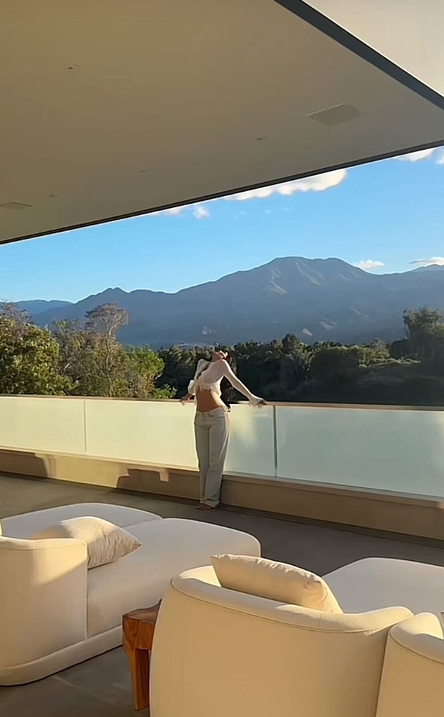To end the house tour, the Kardashian family member leaned over a balcony railing to show her fans the amazing scenery.